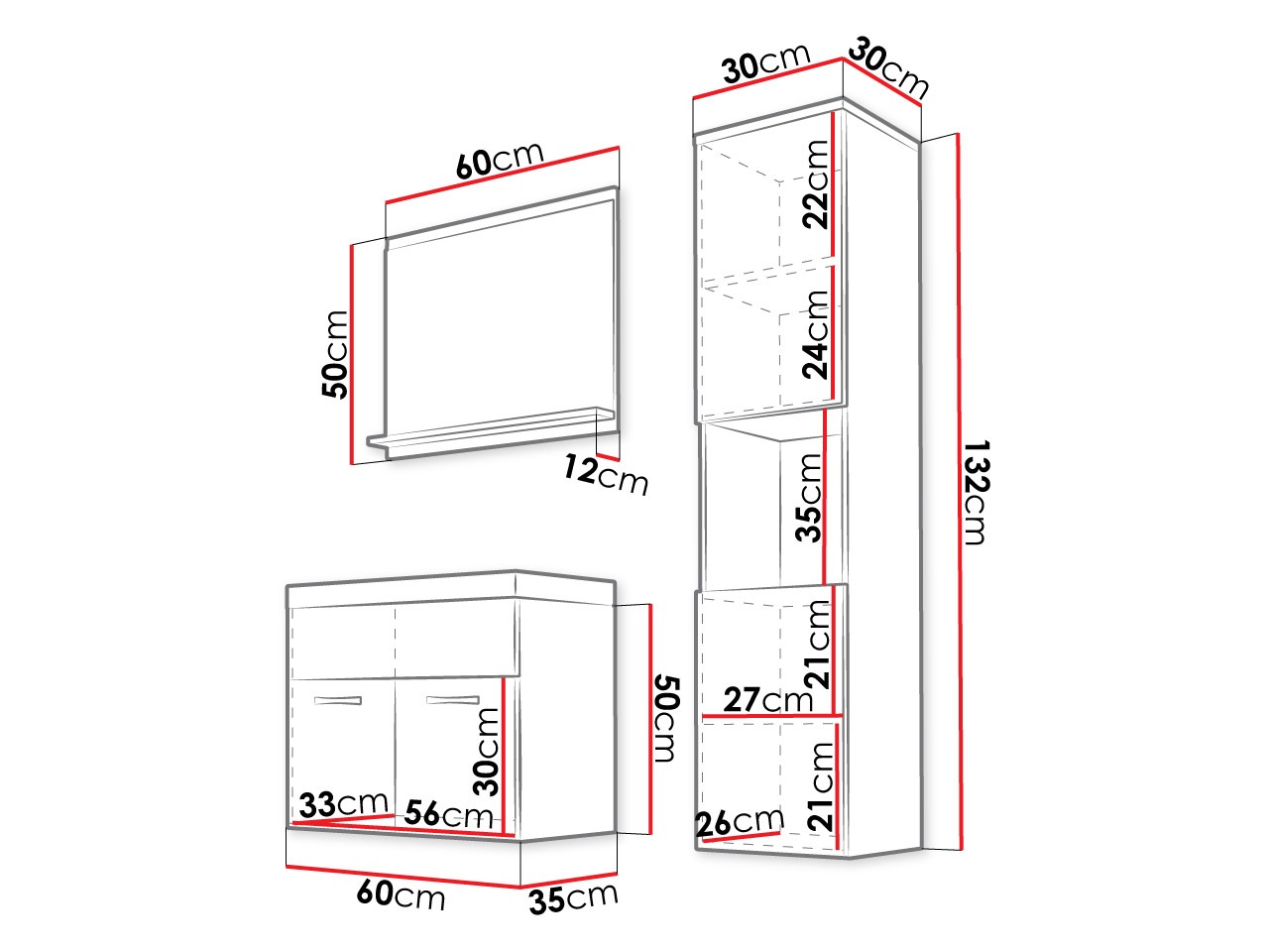 Abmessungen der Hängeschränke: