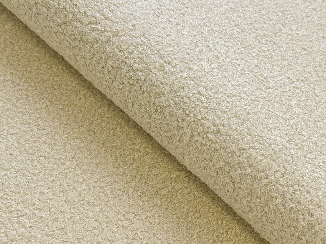 Der „Boucle“-Stoff (Bouclé) zeichnet sich durch sein einzigartiges Strukturmuster aus, das durch unterschiedlich große Schlaufen und Knoten entsteht. Diese Besonderheit verleiht den Möbeln einen außergewöhnlichen Charakter und ein angenehmes Gefühl. Die Oberfläche des Stoffes kann weich oder wollähnlich sein. Dank seiner robusten Struktur ist der Stoff sehr formbeständig, wodurch er zu einem idealen Material für Sofas, Sessel und andere Möbelstücke wird. Wenn Sie einen raffinierten und modernen Raum schaffen wollen, ist dieser Stoff die perfekte Wahl.