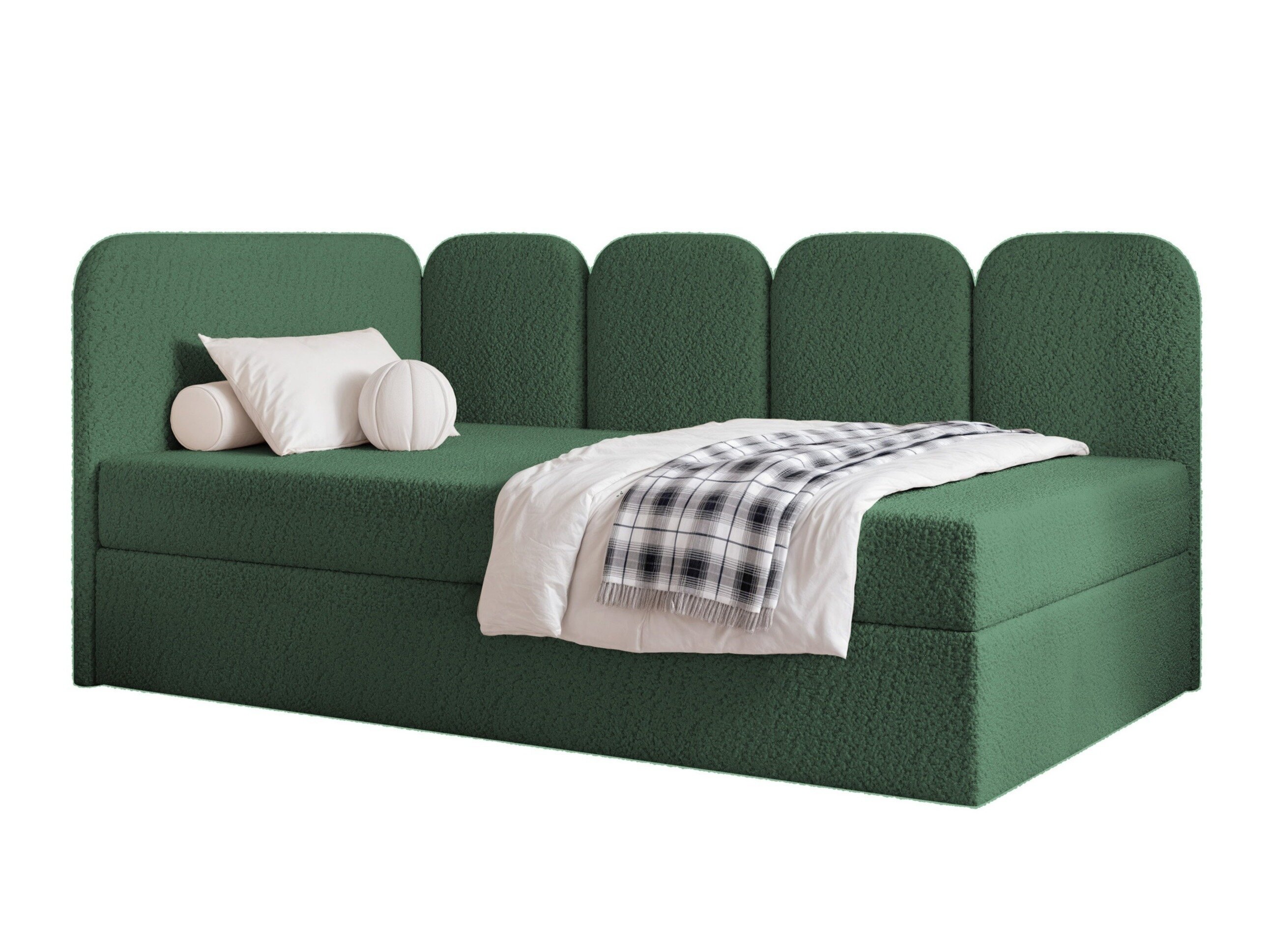 Der „Boucle“-Stoff (Bouclé) zeichnet sich durch sein einzigartiges Strukturmuster aus, das durch unterschiedlich große Schlaufen und Knoten entsteht. Diese Besonderheit verleiht den Möbeln einen außergewöhnlichen Charakter und ein angenehmes Gefühl. Die Oberfläche des Stoffes kann weich oder wollähnlich sein. Dank seiner robusten Struktur ist der Stoff sehr formbeständig, wodurch er zu einem idealen Material für Sofas, Sessel und andere Möbelstücke wird. Wenn Sie einen raffinierten und modernen Raum schaffen wollen, ist dieser Stoff die perfekte Wahl.