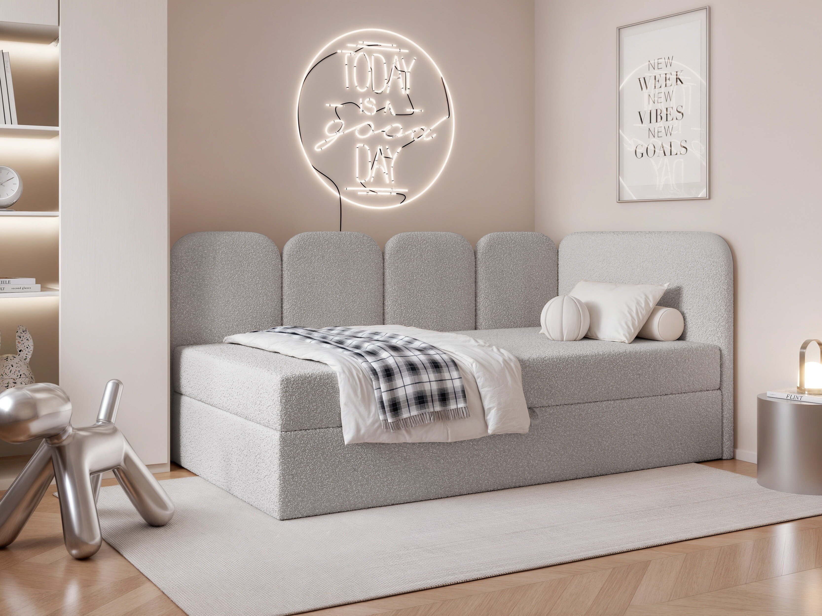 Der „Boucle“-Stoff (Bouclé) zeichnet sich durch sein einzigartiges Strukturmuster aus, das durch unterschiedlich große Schlaufen und Knoten entsteht. Diese Besonderheit verleiht den Möbeln einen außergewöhnlichen Charakter und ein angenehmes Gefühl. Die Oberfläche des Stoffes kann weich oder wollähnlich sein. Dank seiner robusten Struktur ist der Stoff sehr formbeständig, wodurch er zu einem idealen Material für Sofas, Sessel und andere Möbelstücke wird. Wenn Sie einen raffinierten und modernen Raum schaffen wollen, ist dieser Stoff die perfekte Wahl.