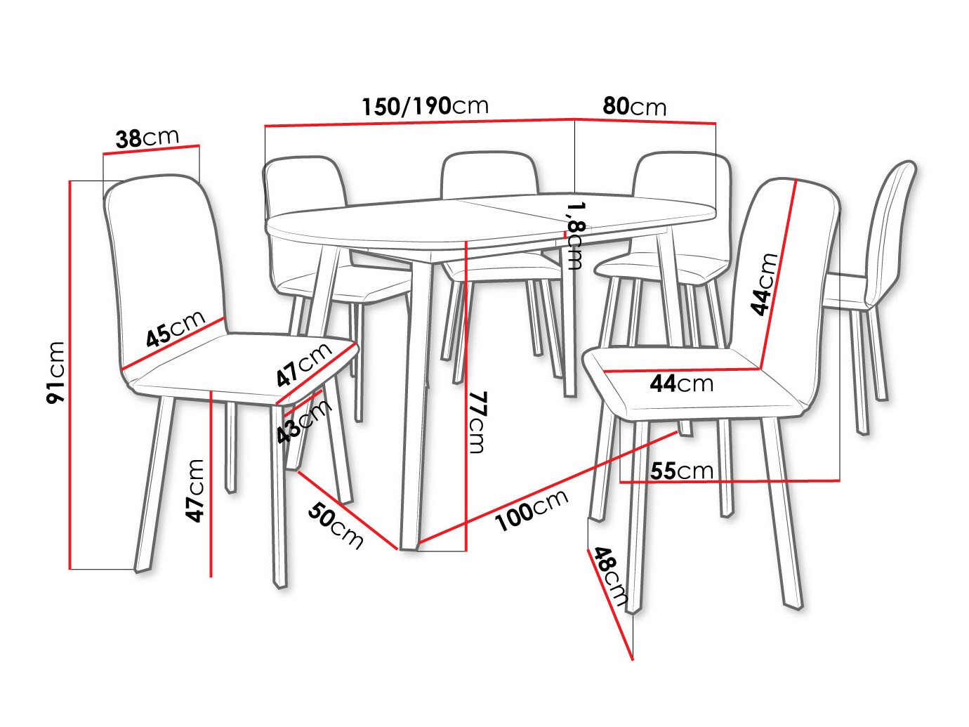 Abmessungen des Stuhls: