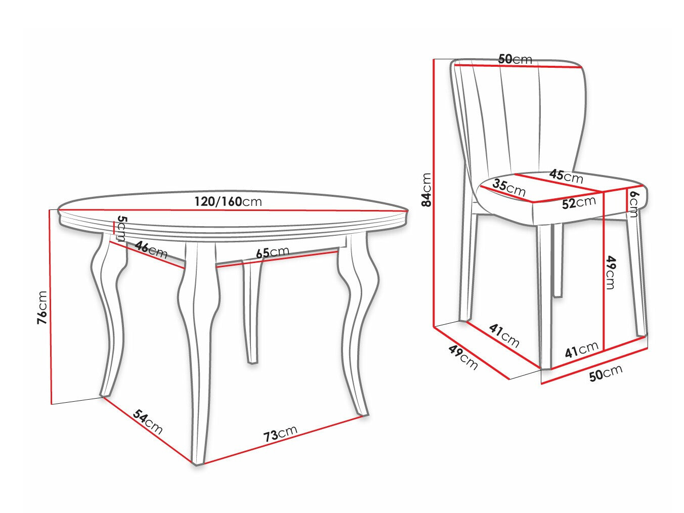 Abmessungen des Stuhls: