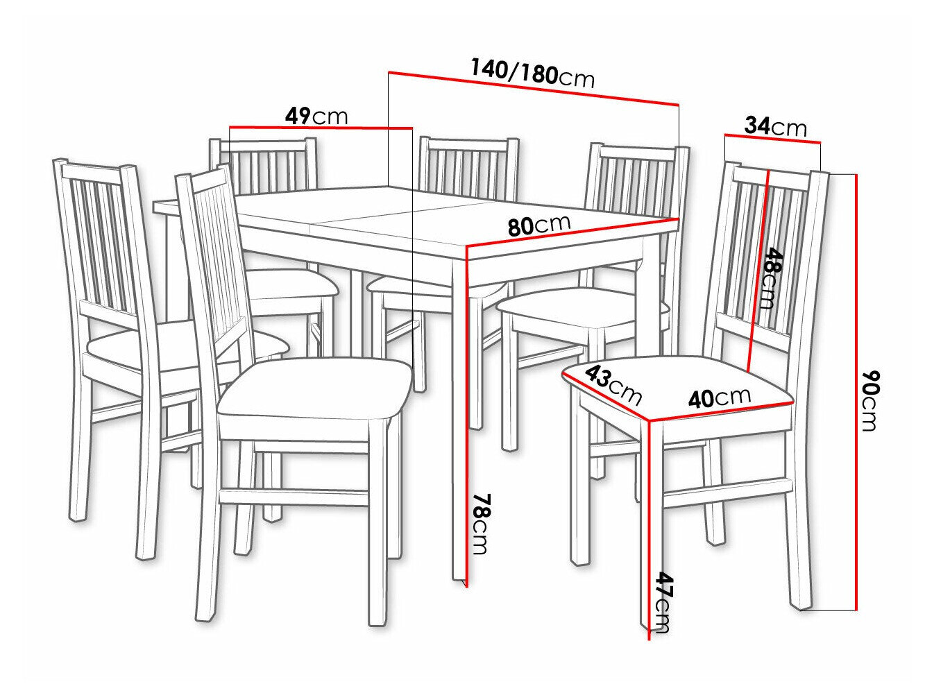 Abmessungen des Stuhls: