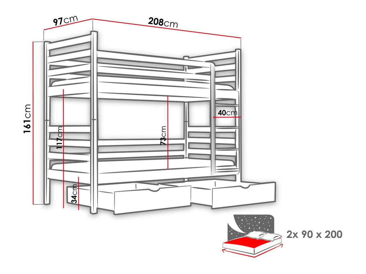 Das Bett ist sehr schön und leicht aufzubauen, allerdings stört mich, dass es sehr wackelig und knarrend ist, ich kann mir nicht vorstellen, dass jemand schwerer als zwei kleine Kinder darauf liegen würde.