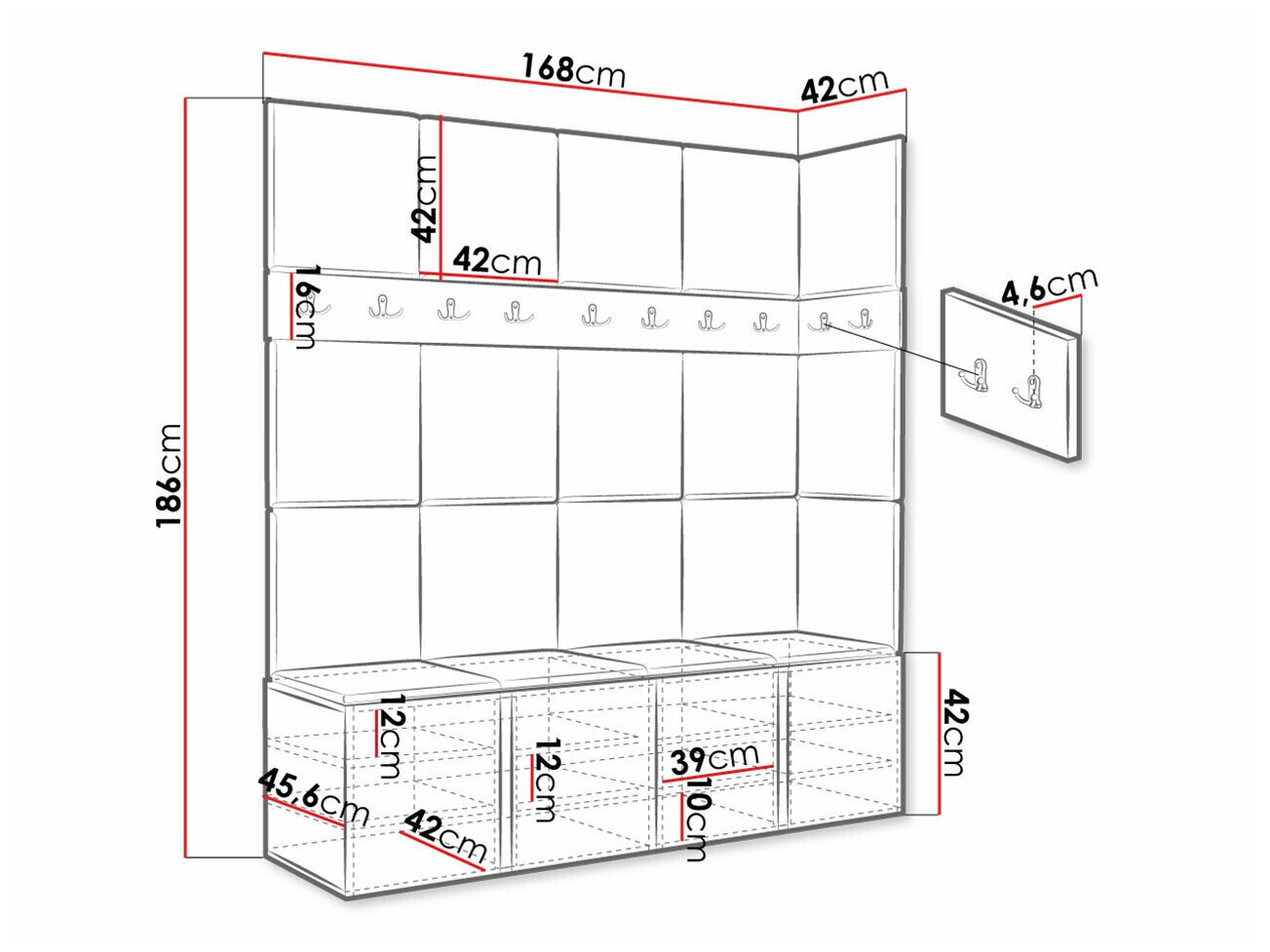 16 x 168 x 4.6; 16 x 42 x 4.6 cm
