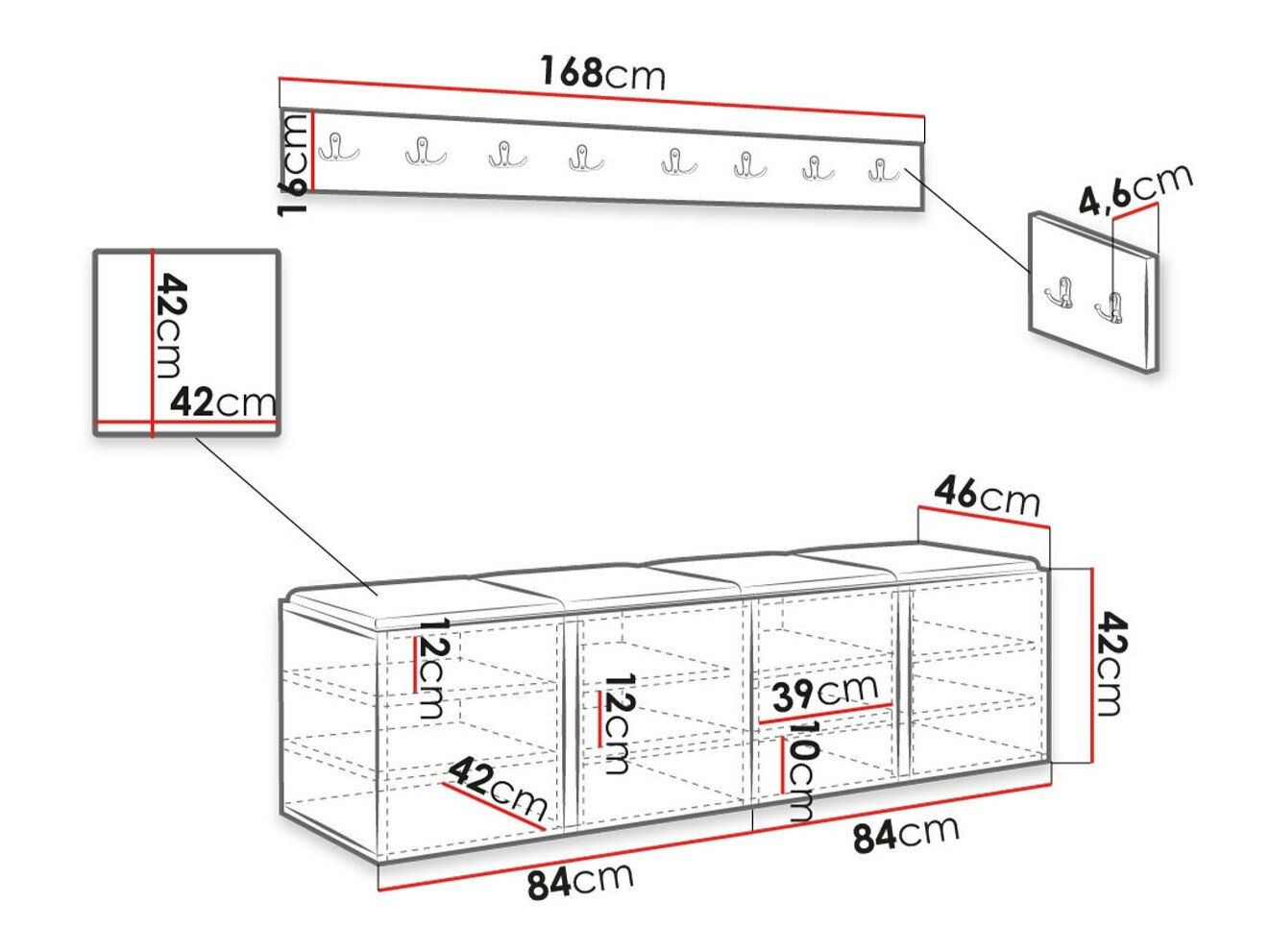 42 x 168 x 46 cm
