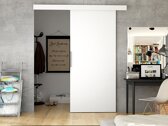 Dünne Melamintür. Die Hardware zur Befestigung der Gleitschiene ist unerlässlich. Die Anleitung zur einfachen Montage ist dürftig.