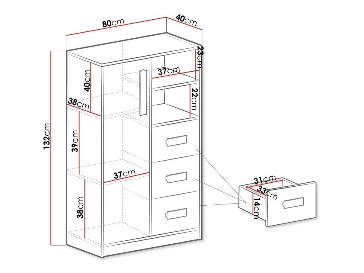 Kommoden Akron H100 (Anthrazit + Weiß + Grau)