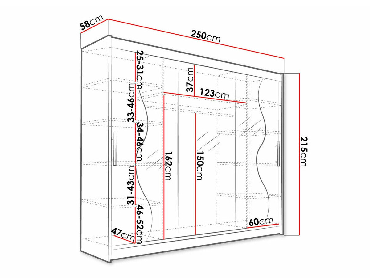 Der Kleiderschrank ist groß, stabil und komfortabel. Ich würde eine bessere Verpackung empfehlen, da es verspiegelte Türen gibt. Die Verteilung ist super, es nimmt genug Zeug auf. Die Türmechanismen bewegen sich leise und reibungslos. Das Einzige, was fehlt, ist etwas, das das Geräusch der sich berührenden Türen an den Außenseiten des Kleiderschranks dämpft, z. B. Silikonstopfen. Die Lieferung erfolgte pünktlich. Der Montageplan war klar und wir kamen ohne professionelle Hilfe zurecht.