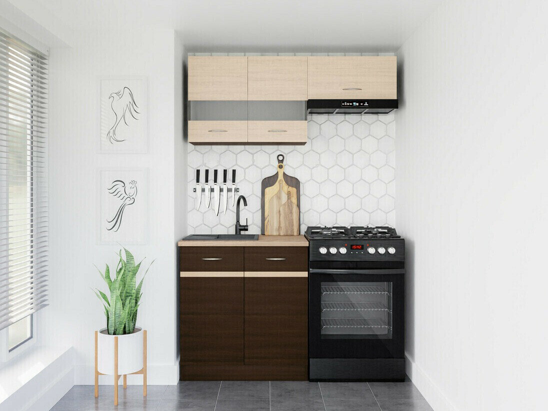 - Die Höhe der Hauptschränke mit Arbeitsplatte beträgt 85 cm (Arbeitsplattentiefe - 60 cm).