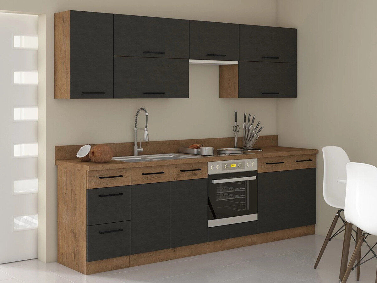 Stellen Sie mit der Modulküchenmöbelkollektion eine einzigartige Kücheneinrichtung zusammen. Diese Kollektion umfasst eine Vielzahl von bodenstehenden und wandhängenden Schränken, und Sie können auch aus mehreren Küchensets wählen. Die Möbel der Kollektion sind in verschiedenen Farben erhältlich, wodurch sie sowohl für Liebhaber heller als auch dunkler Farben ideal sind. Die Möbel zeichnen sich durch ihre geräumigen Schubladen und Schränke aus, die mit einem sanften Schließmechanismus ausgestattet sind.