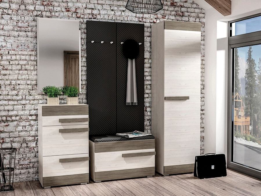 Wenn Sie eine vielseitige Möbelkollektion suchen, die für verschiedene Räume im Haus geeignet ist, ist diese Kollektion genau das Richtige. Die Stücke aus dieser Kollektion eignen sich für Wohnzimmer, Schlafzimmer, Flur oder Kinderzimmer. Der Fokus dieser Kollektion liegt auf Komfort und schönem Design, das sich an unterschiedliche Geschmäcker anpassen lässt. Die Kombination aus gebleichtem Kiefernholz und grauen Farben ist vielseitig und lässt sich leicht kombinieren. Die Möbeloberflächen sind resistent gegen leichte Kratzer und ihre Kanten sind mit einem speziellen ABS-Streifen geschützt, sodass Sie sich keine Sorgen über einen schnellen Verschleiß machen müssen. Die Möbel sind mit Kunststoffbeinen und -griffen ausgestattet, die sich nahtlos in das Gesamtdesign einfügen, ohne es zu überfordern. Die Vitrinenstücke bestehen aus gehärtetem Glas, das haltbarer und sicherer als normales Glas ist. Ein praktisches und universelles Merkmal der Möbel ist, dass die Türen sowohl auf der rechten als auch auf der linken Seite montiert werden können. Darüber hinaus bieten die Möbel sowohl geschlossene als auch offene Stauräume und helfen so bei der organisierten Aufbewahrung von Gegenständen. Wer seiner Inneneinrichtung mehr Einzigartigkeit verleihen möchte, kann für diese Stücke zusätzlich eine energiesparende LED-Beleuchtung bestellen.