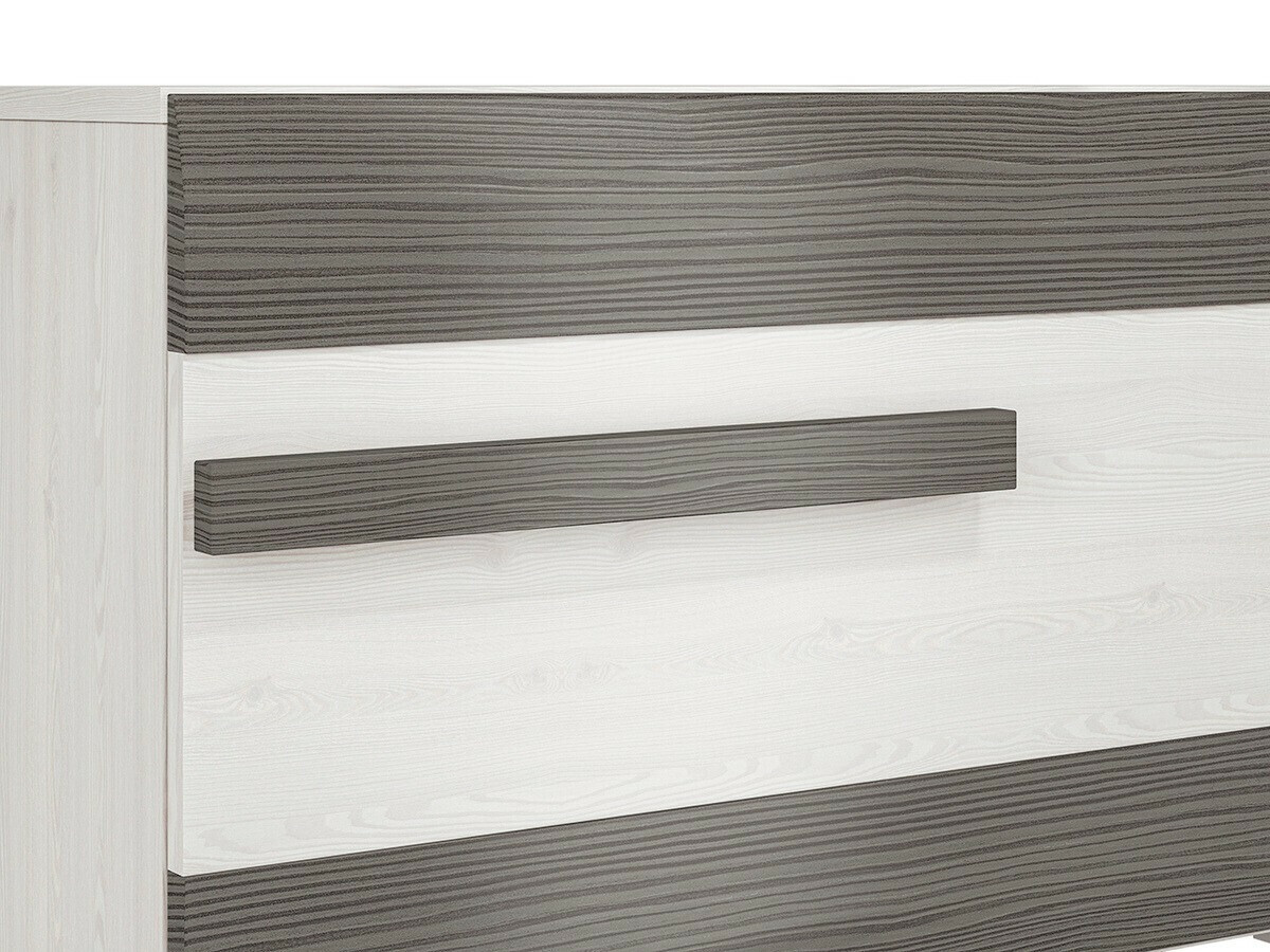 Wenn Sie eine vielseitige Möbelkollektion suchen, die für verschiedene Räume im Haus geeignet ist, ist diese Kollektion genau das Richtige. Die Stücke aus dieser Kollektion eignen sich für Wohnzimmer, Schlafzimmer, Flur oder Kinderzimmer. Der Fokus dieser Kollektion liegt auf Komfort und schönem Design, das sich an unterschiedliche Geschmäcker anpassen lässt. Die Kombination aus gebleichtem Kiefernholz und grauen Farben ist vielseitig und lässt sich leicht kombinieren. Die Möbeloberflächen sind resistent gegen leichte Kratzer und ihre Kanten sind mit einem speziellen ABS-Streifen geschützt, sodass Sie sich keine Sorgen über einen schnellen Verschleiß machen müssen. Die Möbel sind mit Kunststoffbeinen und -griffen ausgestattet, die sich nahtlos in das Gesamtdesign einfügen, ohne es zu überfordern. Die Vitrinenstücke bestehen aus gehärtetem Glas, das haltbarer und sicherer als normales Glas ist. Ein praktisches und universelles Merkmal der Möbel ist, dass die Türen sowohl auf der rechten als auch auf der linken Seite montiert werden können. Darüber hinaus bieten die Möbel sowohl geschlossene als auch offene Stauräume und helfen so bei der organisierten Aufbewahrung von Gegenständen. Wer seiner Inneneinrichtung mehr Einzigartigkeit verleihen möchte, kann für diese Stücke zusätzlich eine energiesparende LED-Beleuchtung bestellen.