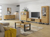 Diese Wohnzimmer-Kollektion lässt sich gut mit dekorativen Beton- oder Natursteinoptiken kombinieren. Die Vitrinen, TV-Schränke und Kommoden dieser Kollektion haben schwarze beine, die perfekt zu den Metallgriffen passen. Die Möbel sind nicht nur robust, sondern verfügen auch über zahlreiche Einlegeböden und Schubladen. In einer stilvollen Vitrine können Sie Ihr Porzellan und Ihre Familienfotos ausstellen und in den Schubladen Tischdecken, Decken oder sogar Kleidung aufbewahren.