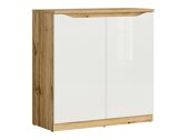 Um ein gemütliches und gleichzeitig modernes Interieur zu schaffen, ist es wichtig, auf die Farbe und Form der Möbel zu achten. Warum ist die Kollektion Ihre Aufmerksamkeit wert? Diese Möbel helfen, ein modernes Interieur mit einem leichtem skandinavischen Touch zu schaffen. Sie können die Möbel problemlos sowohl im Schlafzimmer als auch im Wohnzimmer aufstellen. Die Farbe der Eichenholzoptik „Wotan“ ist ein echter Klassiker und passt perfekt in jedes Interieur. In der Kollektion wird sie mit einem glänzenden Weiß kombiniert, wodurch ein auffälliges Duo entsteht. Das Holzmuster schafft ein natürlich wirkendes Möbeldesign. Bei diesen Möbeln wird das Prinzip der versteckten Griffe angewandt, was bedeutet, dass die Form der Türen und Schubladen eine unbesorgte Nutzung ermöglicht, ohne Fingerabdrücke oder Flecken zu hinterlassen.