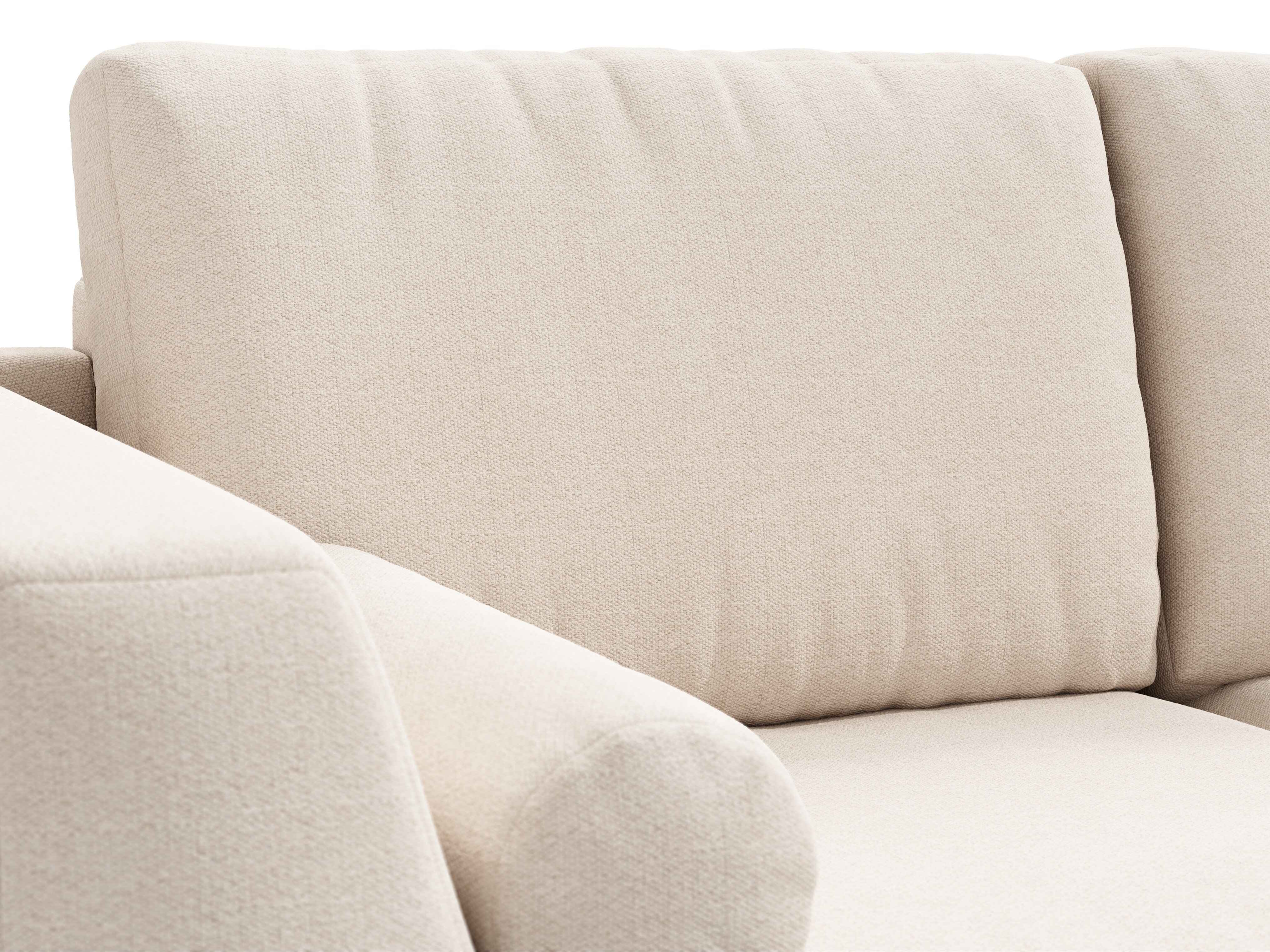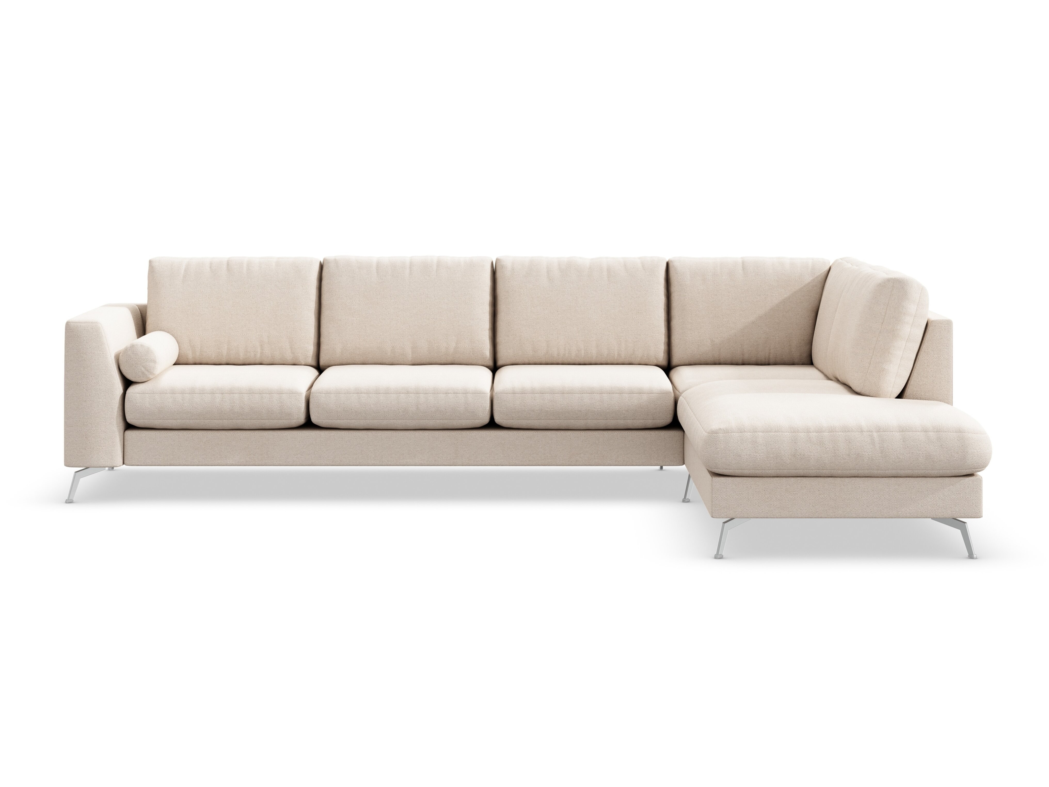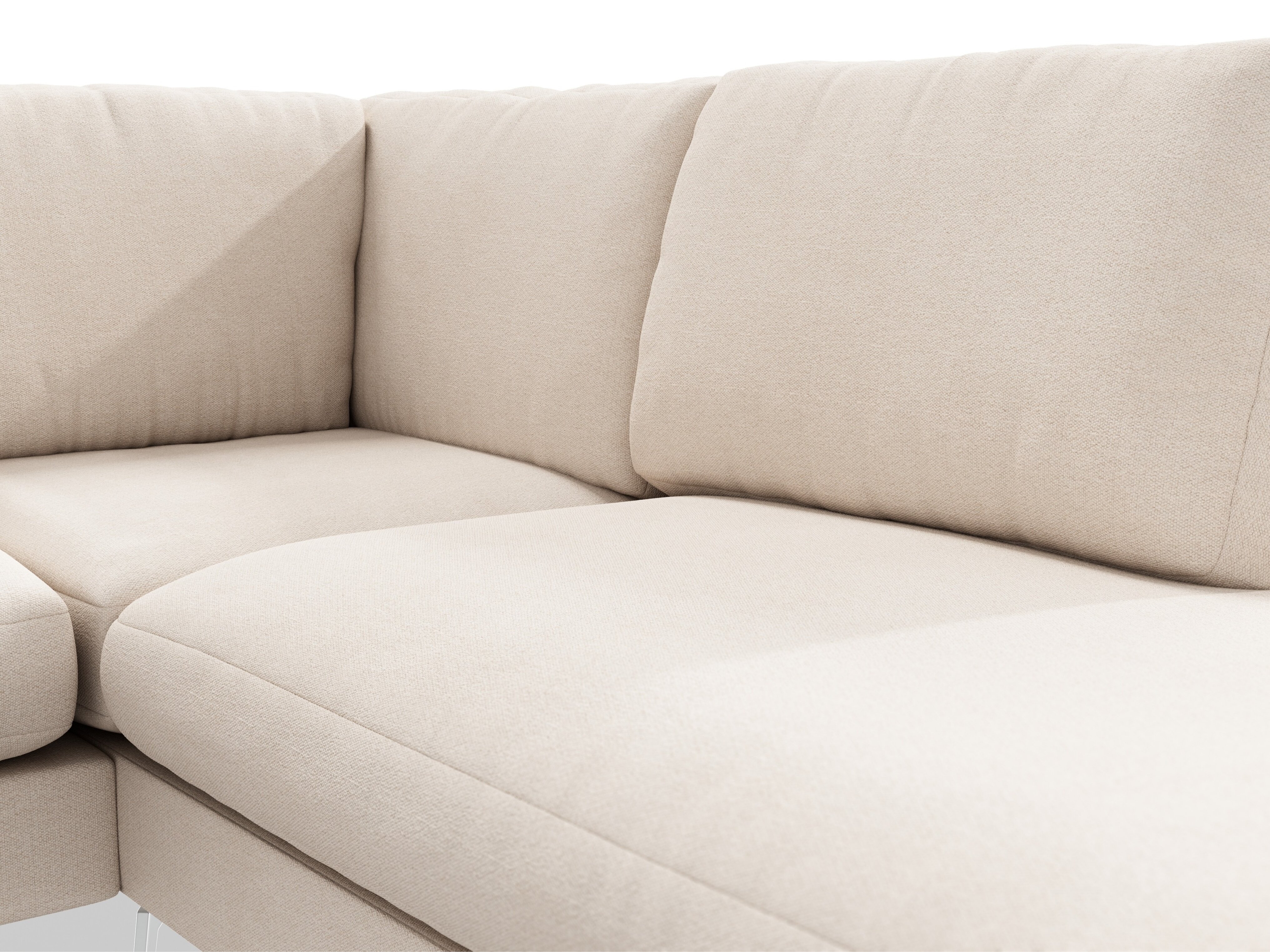 Wenn Sie das Sofa von vorne betrachten, befindet sich der verlängerte Teil bzw. die Ecke der rechtsseitigen Option auf Ihrer rechten Seite. Die gewählte Eckoption sollte den Fluss des Raums verbessern und eine einfache Bewegung innerhalb des Raums ermöglichen.
