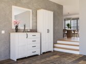 Wenn Sie die Schlichtheit des skandinavischen Stils lieben, dann ist diese Kollektion genau das Richtige für Sie. Die Möbelkollektion versprüht Schlichtheit und Gemütlichkeit. Die Kollektion wird von hellen und leichten Farben dominiert. Die hellen Fronten und Unterschränke der Möbel weisen verschiedene Holzmuster auf, was ihnen Natürlichkeit verleiht und gut zu den Tischplatten passt. Diese Kollektion besticht durch die Schlichtheit der Fronten und die kleinen Griffe, die nette Akzente setzen. Mit der Möbelkollektion können Sie ein stilvoll aussehendes Wohnzimmer oder einen Vorraum einrichten. Nicht nur gemütlich, sondern auch praktisch mit Stauraum für die wichtigsten Dinge sorgt sie für angenehmen Wohnkomfort. Das Besondere an den Möbeln ist der geräuschlose Schließmechanismus, der die Türen und Schubladen vor einem schnellen Schließen schützt. Dank spezieller Bremsen werden die Türen und Schubladen kurz vor dem Schließen angehalten und langsam eingezogen, so dass kein Geräusch entsteht. Die Möbel sehen sowohl in hellen als auch in dunklen Räumen gut aus und sorgen für eine skandinavische Wohnatmosphäre.