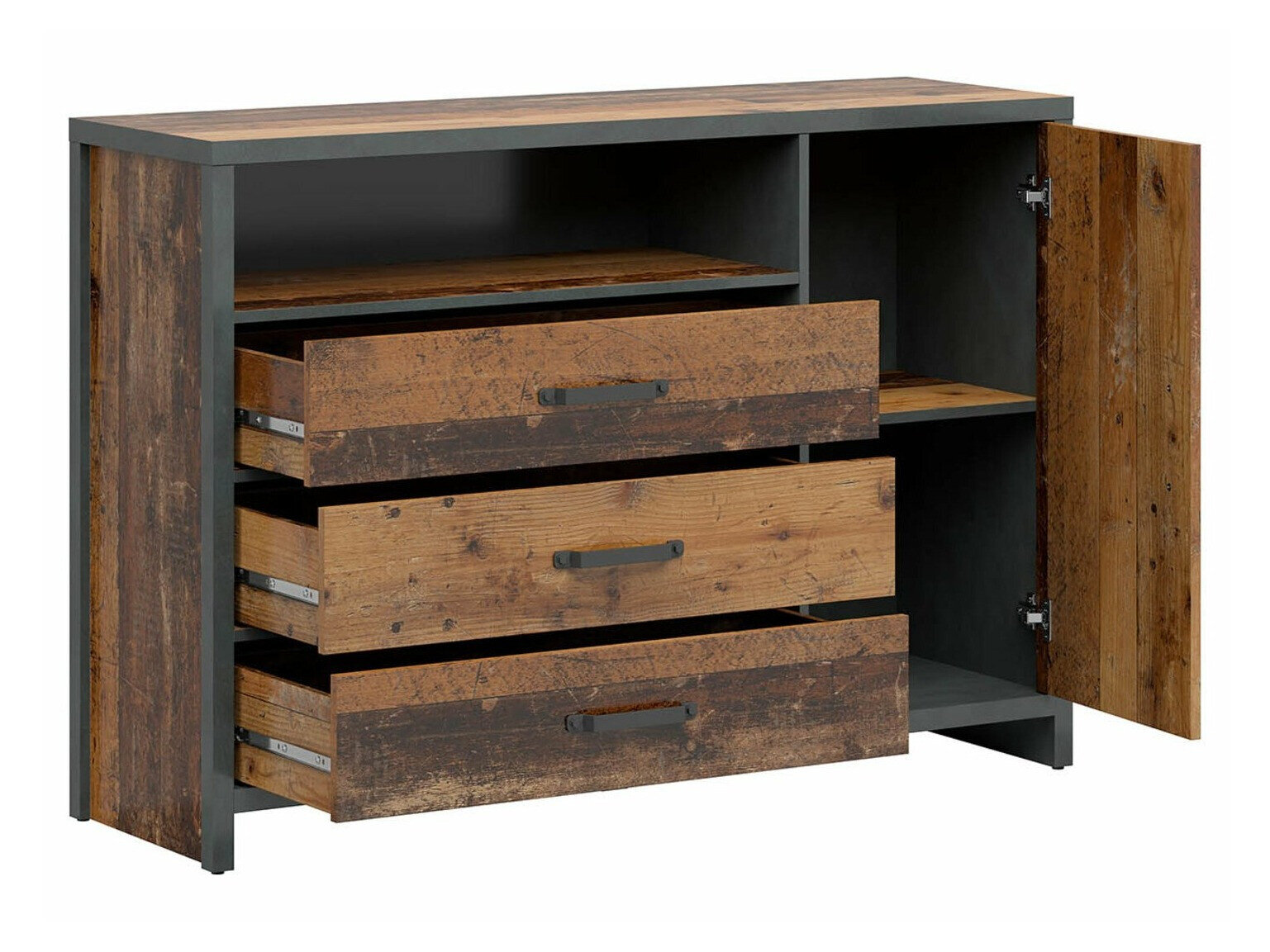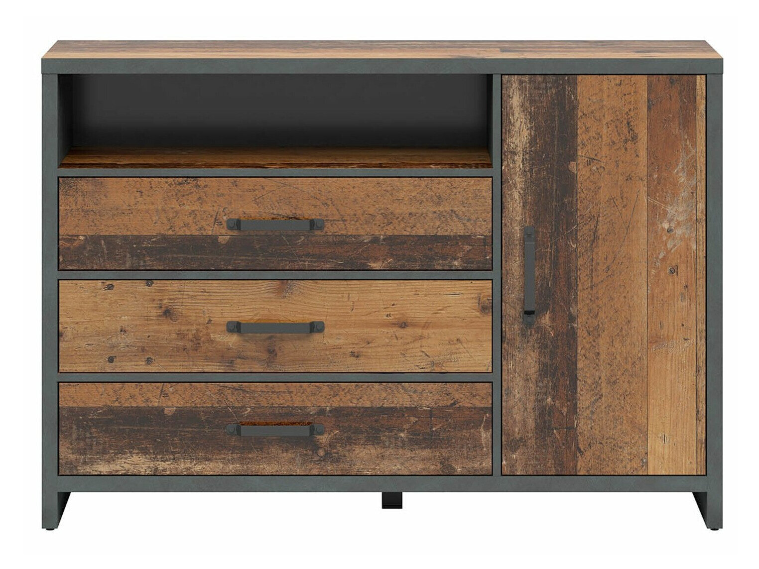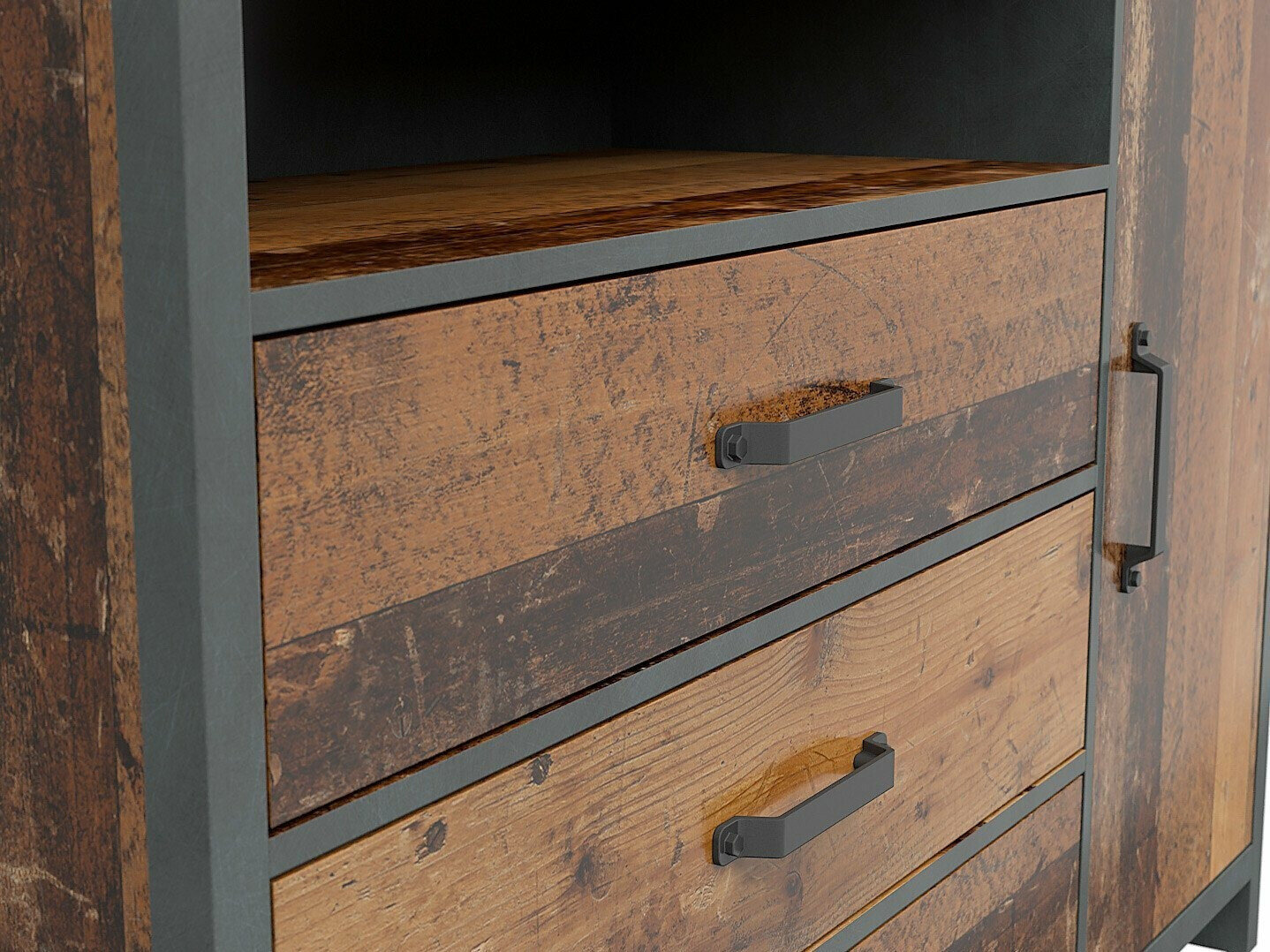 Der industrielle Einrichtungsstil ist sehr beliebt, vor allem in Räumen wie Lofts. Der vom Stadtleben inspirierte Stil wird dazu beitragen, ein einzigartiges Interieur zu schaffen. Dunkle Farben, rohe Betonwände, Metallakzente, Braun und „Matera"-Grau dominieren hier. Wenn Sie zu Hause oder sogar im Zimmer eines jungen Mannes eine Stimmung im industriellen Stil schaffen wollen, dann ist diese Kollektion Ihre Aufmerksamkeit wert. Die Möbel der Kollektion werden auch die Bedürfnisse der wählerischsten jungen Leute befriedigen. Das Design der Möbel trägt dazu bei, ein stilvolles Zimmer zu schaffen, in dem sowohl das Verbringen der Zeit als auch das Lernen zum Vergnügen werden. Die Kanten der Möbel sind in einer dunkelgrauen Farbe behandelt, die zu den Griffen passt. In der Kollektion fehlt es nicht an verschiedenen Formen und unterschiedlichen Layouts, es gibt viele Regale und Schränke. Das macht es einfacher, Ordnung im Raum zu halten.