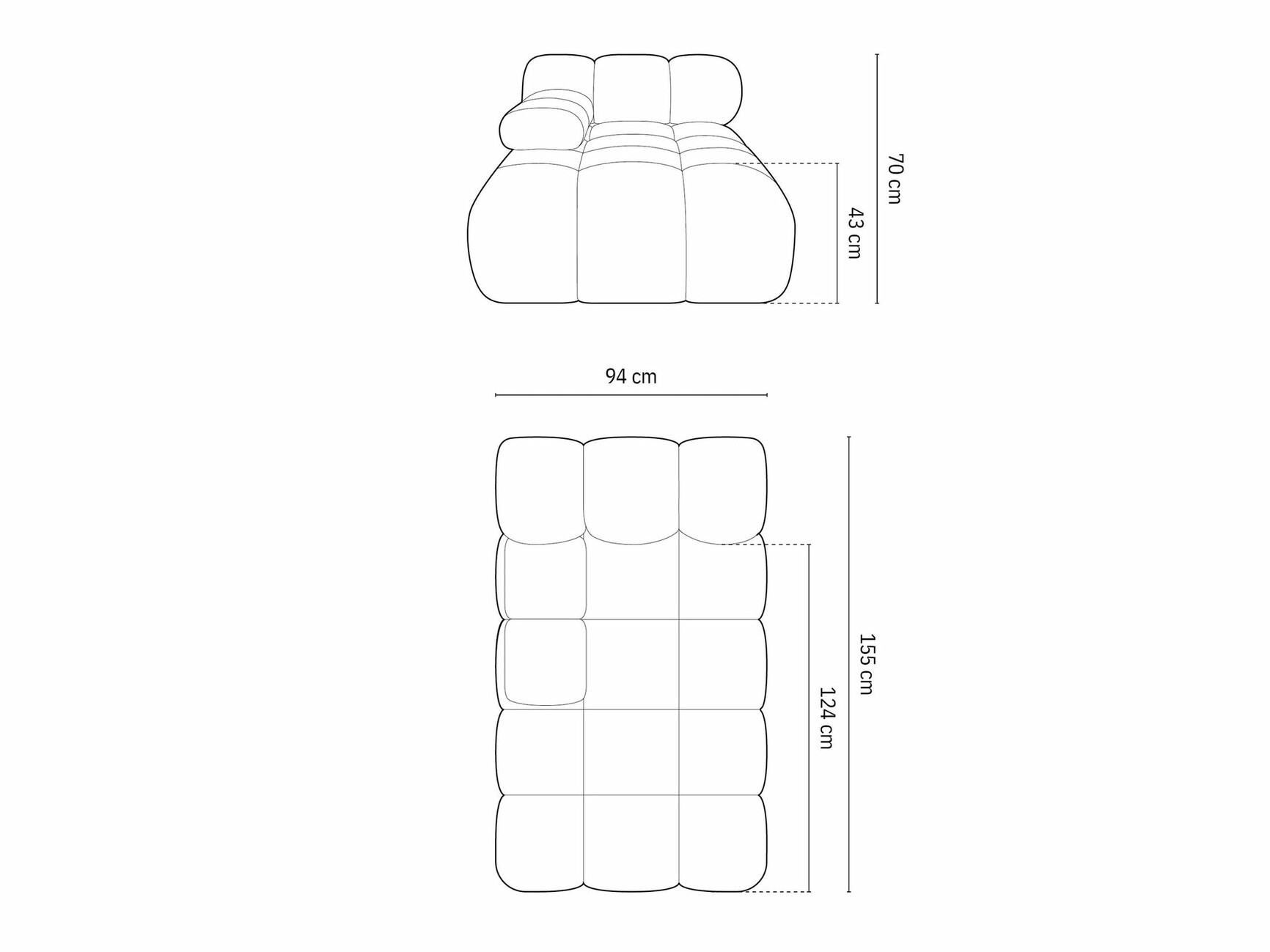 Der Stoff der Rückseite des Möbels unterscheidet sich nicht vom Stoff des Hauptmöbels. Sie können Möbel mit dieser Eigenschaft in der Mitte des Raumes aufstellen.