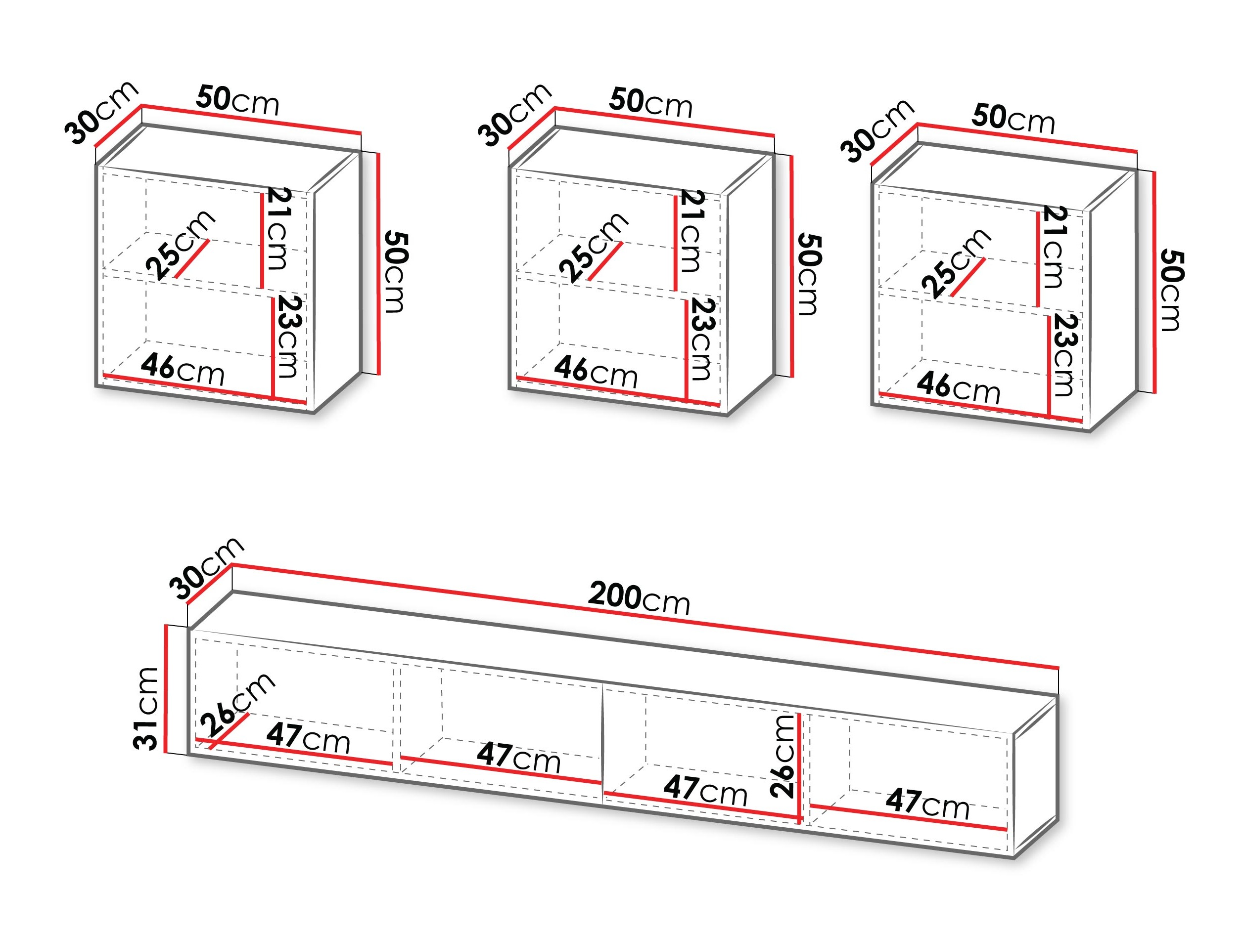 Abmessungen der Hängeschränke: