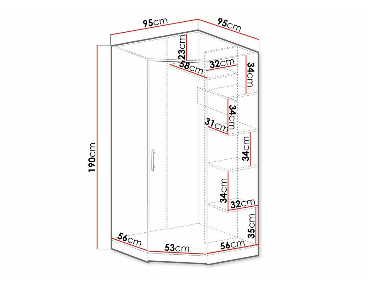 Der Schrank ist sehr schön, der Zusammenbau ist nicht schwierig, es wäre jedoch ratsam, die Anleitung sorgfältig zu lesen. Es ist geräumig, aber die beiden Kleiderbügelstangen überlappen sich, was beim Ordnen der Kleidung Aufmerksamkeit erfordert, da nicht der gesamte Platz beider Stangen genutzt werden kann. Ich möchte auch die Tatsache hinzufügen, dass die Höhe des Kleiderschranks, wenn es sich nicht um einen Raum mit niedriger Decke handelt, etwas seltsam aussehen wird, aber das kann entweder durch einen anderen Korpus für diesen Teil oder durch die Anordnung einiger Gegenstände gelöst werden.