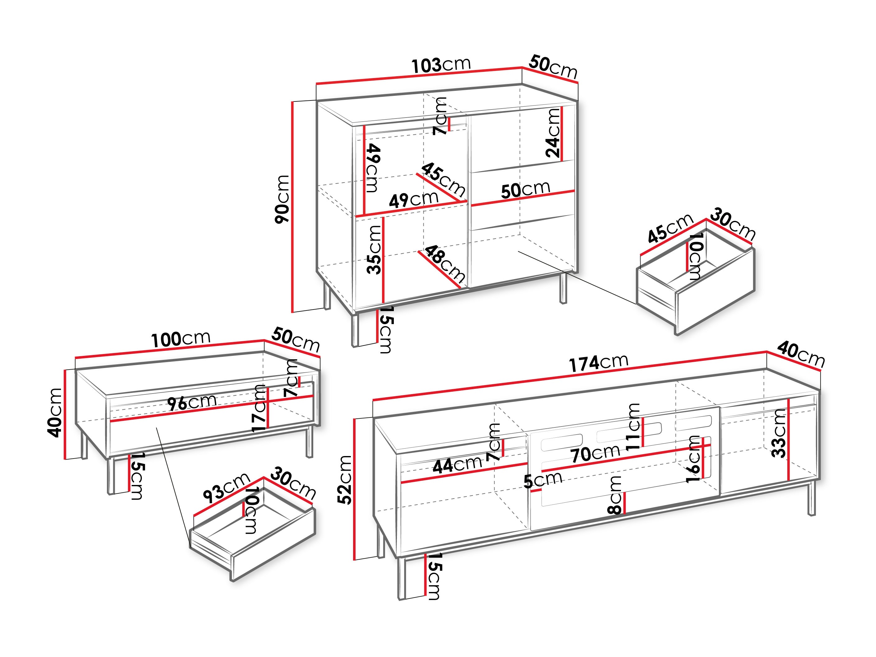 Abmessungen der Kommode: