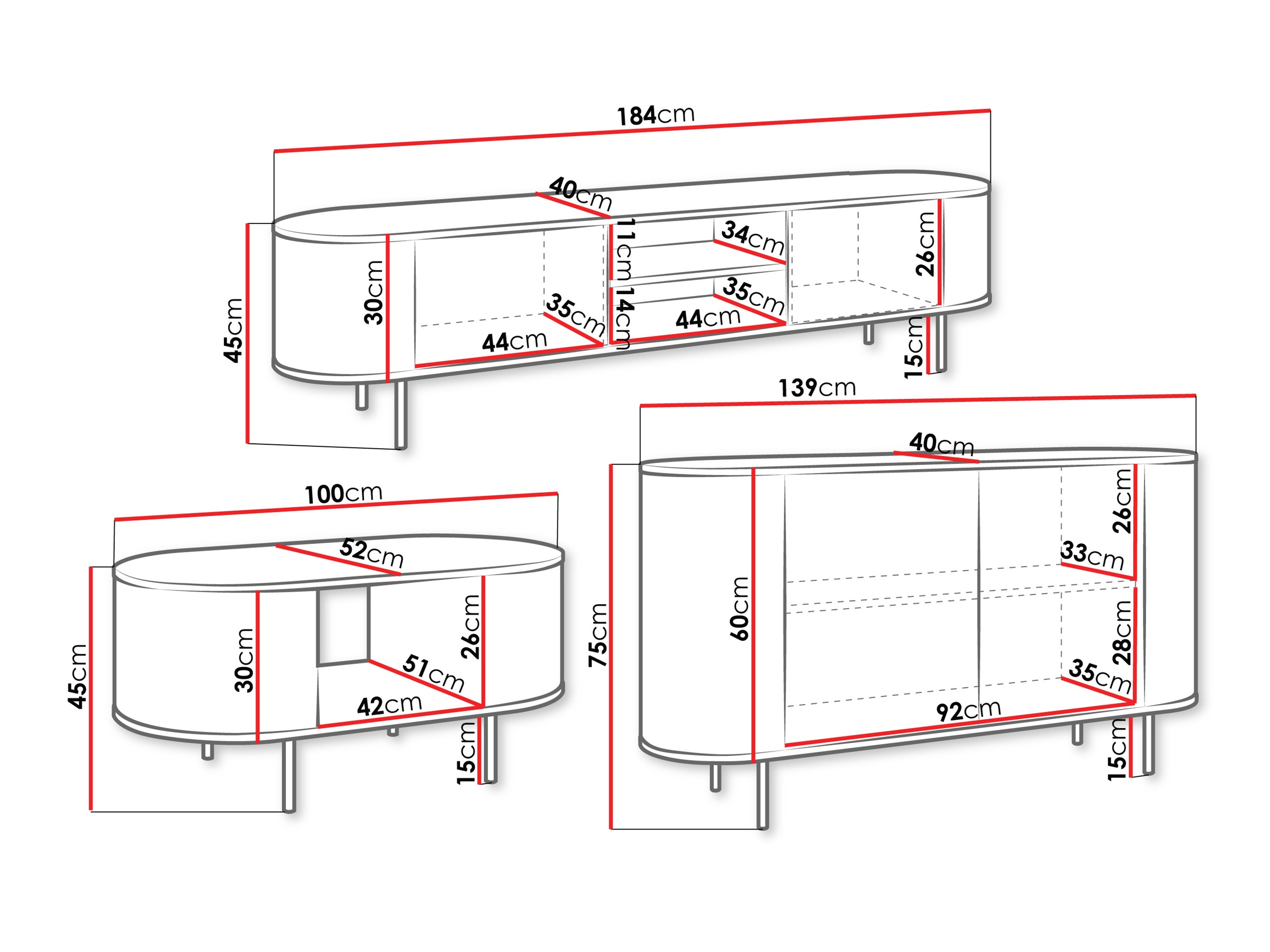 Abmessungen des TV-Möbels: