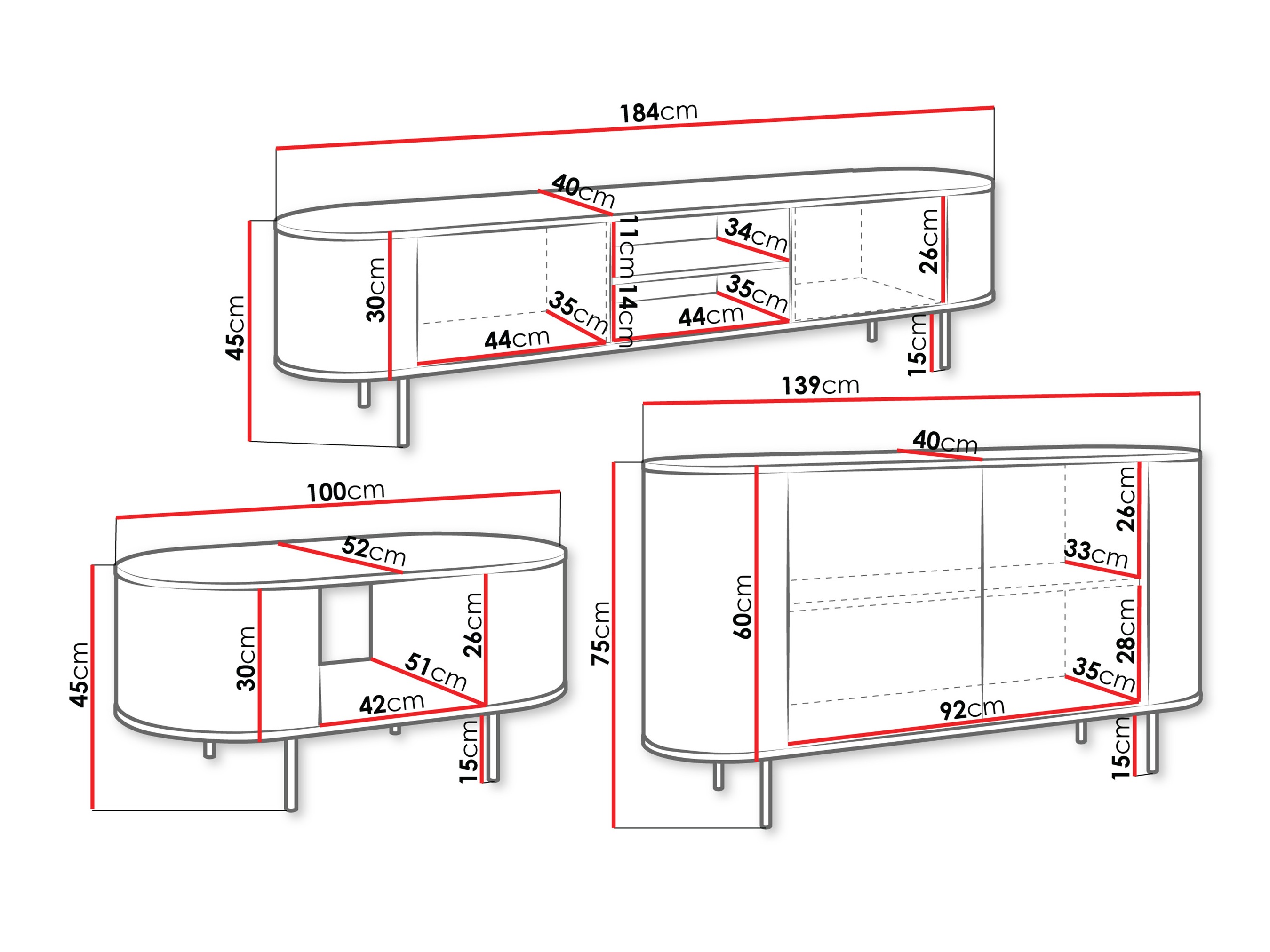 Abmessungen des TV-Möbels: