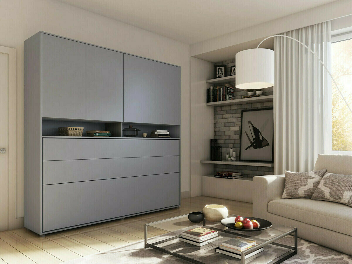 Ein belebtes Wohnzimmer und ein kreatives Büro, in dem außergewöhnliche Projekte entstehen - alles in einem Raum. Oder ein Kinderzimmer, das nachts zu einem echt gemütlichen Schlafzimmer wird. Ist das möglich? Na klar! Mit wenigen Handgriffen lässt sich jeder Raum in der Wohnung in ein Schlafzimmer verwandeln. Ein Schrank mit versteckten Betten schafft Platz, der sonst durch ein herkömmliches Bett oder ein Sofa belegt wäre, was normalerweise nicht die beste Lösung für den täglichen Schlaf ist. Das Ein- und Ausklappen des Bettes dauert nur wenige Sekunden, so dass Sie Ihr Wohnzimmer in kürzester Zeit in ein Schlafzimmer oder Ihr Schlafzimmer in ein Büro verwandeln können. All dies ist möglich, ohne dass Sie auf den nächtlichen Komfort verzichten müssen und dank des modernen Designs tagsüber einen ästhetischen Raum vorfinden.