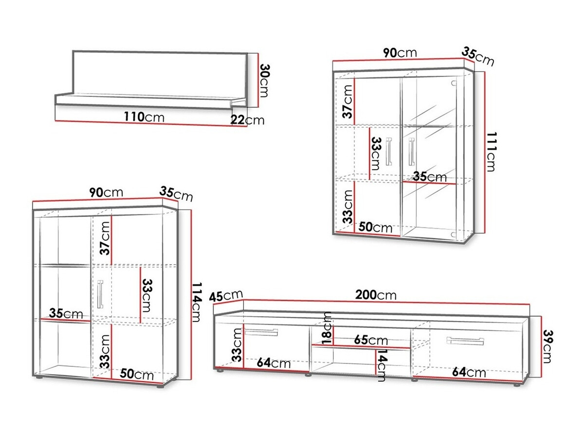 Abmessungen der Hängeschränke: