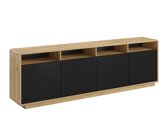 Die Möbelkollektion wird sicher ihren Platz in den Wohnungen von Personen finden, die moderne Innenarchitektur lieben. Die schwarzen Möbel werden durch Seiten aus Eichenholzoptik belebt. Das Hauptmerkmal dieser Kollektion ist ihre hochmatte Oberfläche. Sie ist mit einer speziellen „super matten“ Folie beschichtet, die die Möbeloberfläche vor Fingerabdrücken schützt. Das exklusive Design der Kollektion wird durch den „Push-to-Open“-Öffnungsmechanismus unterstrichen, der es ermöglicht, die Tür des ausgewählten Möbelstücks mit nur einer Berührung zu öffnen. Die Möbel haben abgerundete Ecken für zusätzlichen Schutz für spielende Kinder. In den offenen Bereichen der Möbel kann eine LED-Beleuchtung installiert werden. Die Kollektion umfasst alle grundlegenden Wohnzimmermöbel: ein Regal, einen Couchtisch, ein Hängeregal sowie Schränke und TV-Tische in verschiedenen Größen.