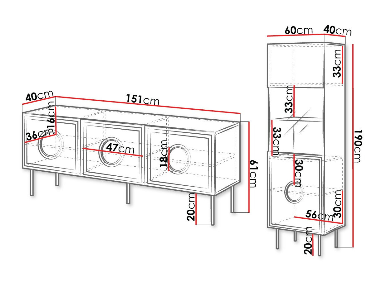61 x 151 x 40 cm