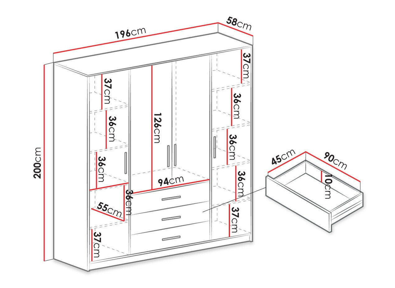 200 cm  196 cm  58 cm