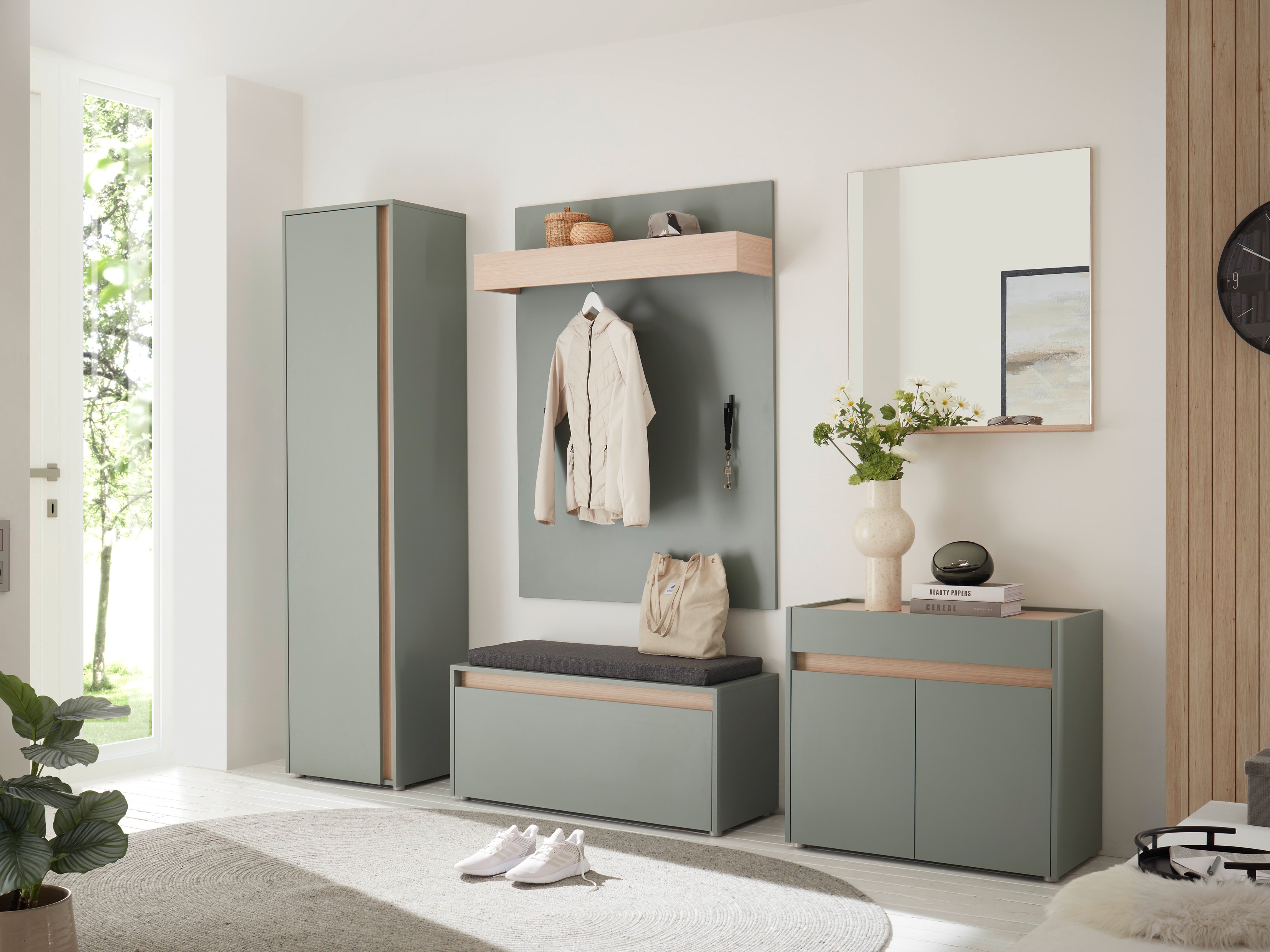 - An der Wand montierte Garderobe