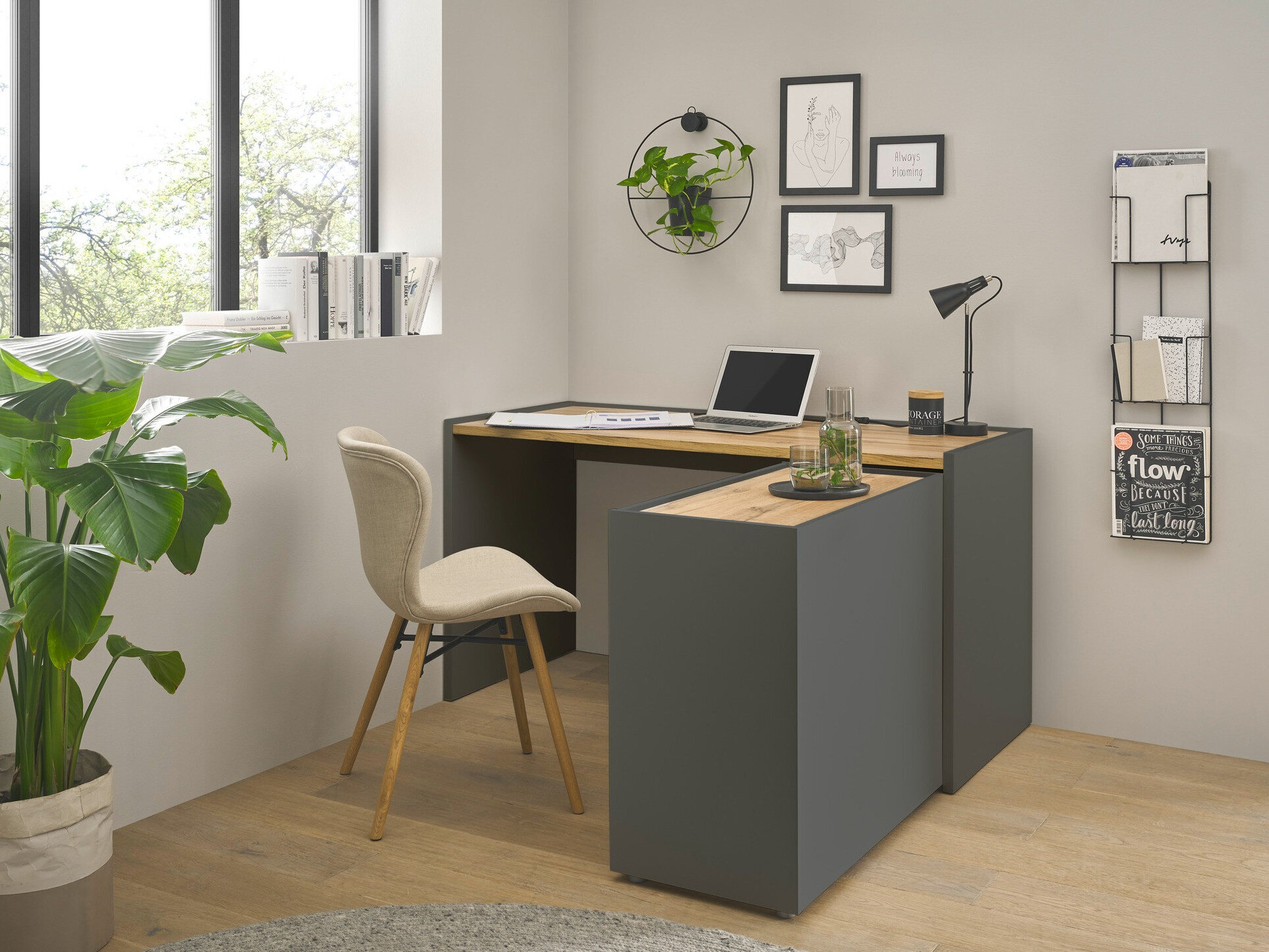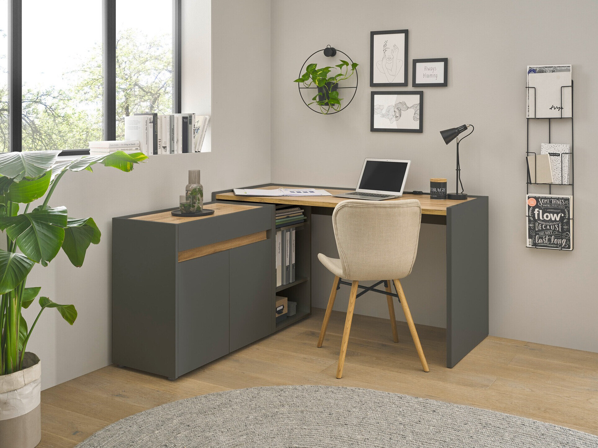 Heimbüro-Set Elbsori 151 (Anthrazit + Wotan Eiche)