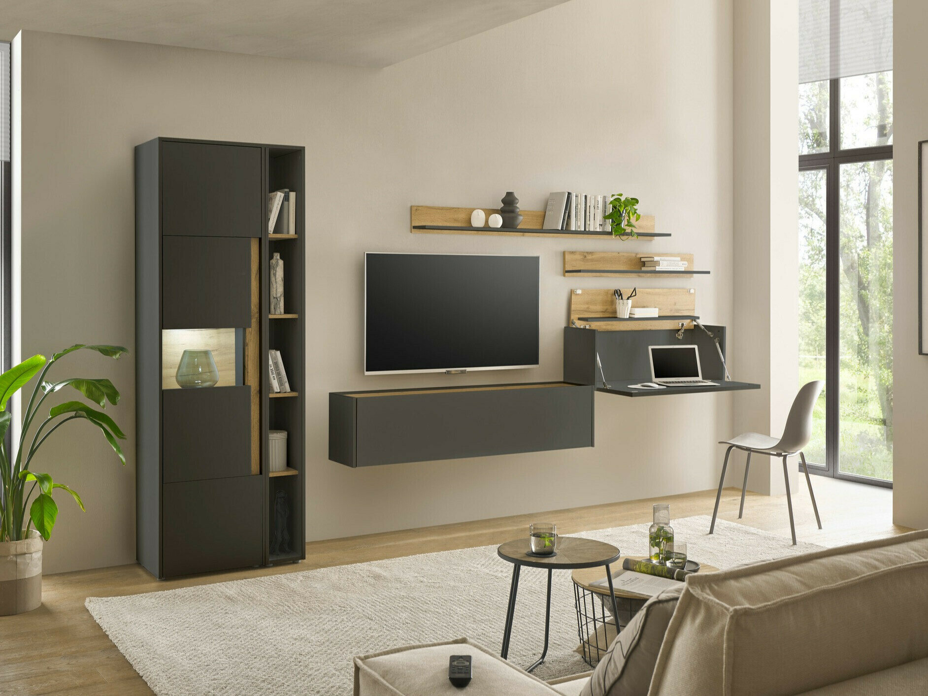 Wohnzimmer-Sets Elbsori 140 (Anthrazit + Wotan Eiche)
