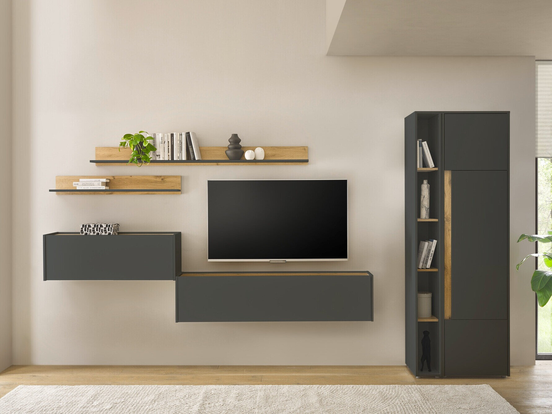 Wohnzimmer-Sets Elbsori 145 (Anthrazit + Wotan Eiche)