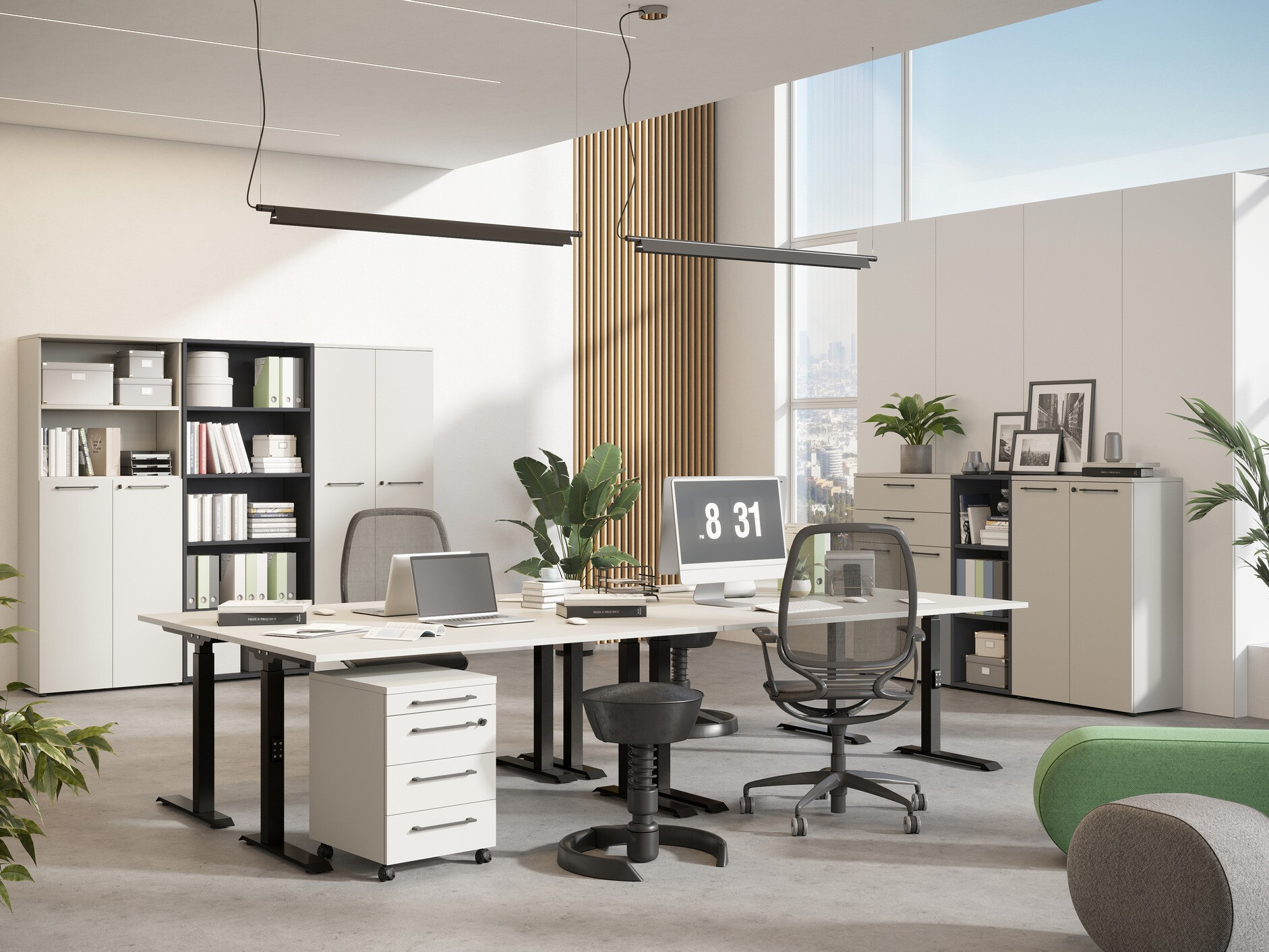 Die Kollektion moderner Designmöbel wird jeden Fan von minimalistischem Design begeistern. Bei dieser Möbelkollektion können Sie aus mehreren Farbvarianten wählen. Die hellgraue Möbelserie wird diejenigen erfreuen, die ein helles Wohndesign mögen, und die Möbel in der Eichenholzoptik „Grandson“, ergänzt durch die Farbe Graphit, werden die Liebhaber von Natürlichkeit begeistern. Diese Möbelkollektion wird durch Metallgriffe ergänzt, die dem Innenraum Leichtigkeit verleihen. Die Möbel sind leicht zu pflegen, da sie mit einem farblosen Material überzogen sind, das sie vor kleinen Kratzern schützt und eine einfache Reinigung von angesammeltem Schmutz ermöglicht. Diese Kollektion verfügt außerdem über kunststoffgeschützte Kanten, die aus stoßfesten Materialien hergestellt sind. Die Schubladen und Türen sind mit einem geräuschlosen Schließmechanismus ausgestattet, der verhindert, dass sie sich schnell schließen. Funktionalität und Komfort sind wesentliche Merkmale dieser in Deutschland hergestellten Kollektion. Die Schränke ermöglichen es Ihnen, die bequemste Art der Aufbewahrung zu wählen, eine abschließbare Schublade sorgt für Privatsphäre, und ein höhenverstellbarer Tisch trägt dazu bei, einen komfortablen Arbeitsplatz zu schaffen. Diese Möbelkollektion wird Ihnen helfen, eine moderne Arbeitsumgebung zu schaffen.