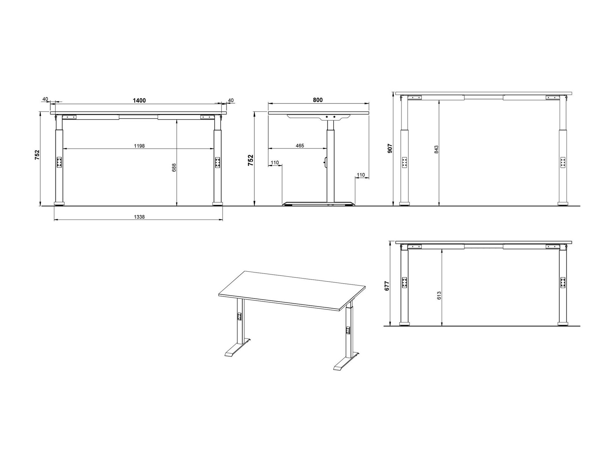 Bürotisch Eliromo 121 (Hellgrau + Schwarz)