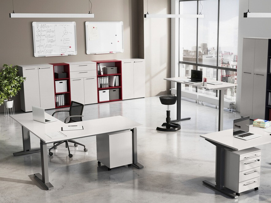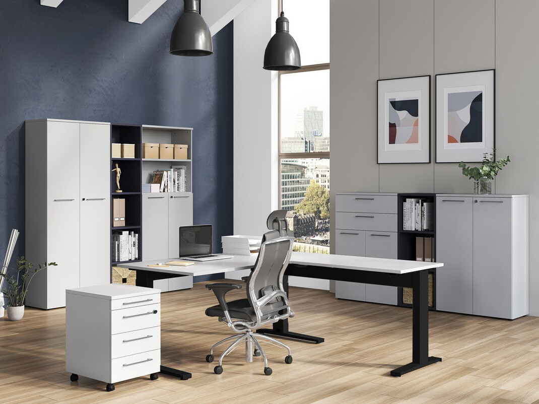 Die Kollektion moderner Designmöbel wird jeden Fan von minimalistischem Design begeistern. Bei dieser Möbelkollektion können Sie aus mehreren Farbvarianten wählen. Die hellgraue Möbelserie wird diejenigen erfreuen, die ein helles Wohndesign mögen, und die Möbel in der Eichenholzoptik „Grandson“, ergänzt durch die Farbe Graphit, werden die Liebhaber von Natürlichkeit begeistern. Diese Möbelkollektion wird durch Metallgriffe ergänzt, die dem Innenraum Leichtigkeit verleihen. Die Möbel sind leicht zu pflegen, da sie mit einem farblosen Material überzogen sind, das sie vor kleinen Kratzern schützt und eine einfache Reinigung von angesammeltem Schmutz ermöglicht. Diese Kollektion verfügt außerdem über kunststoffgeschützte Kanten, die aus stoßfesten Materialien hergestellt sind. Die Schubladen und Türen sind mit einem geräuschlosen Schließmechanismus ausgestattet, der verhindert, dass sie sich schnell schließen. Funktionalität und Komfort sind wesentliche Merkmale dieser in Deutschland hergestellten Kollektion. Die Schränke ermöglichen es Ihnen, die bequemste Art der Aufbewahrung zu wählen, eine abschließbare Schublade sorgt für Privatsphäre, und ein höhenverstellbarer Tisch trägt dazu bei, einen komfortablen Arbeitsplatz zu schaffen. Diese Möbelkollektion wird Ihnen helfen, eine moderne Arbeitsumgebung zu schaffen.