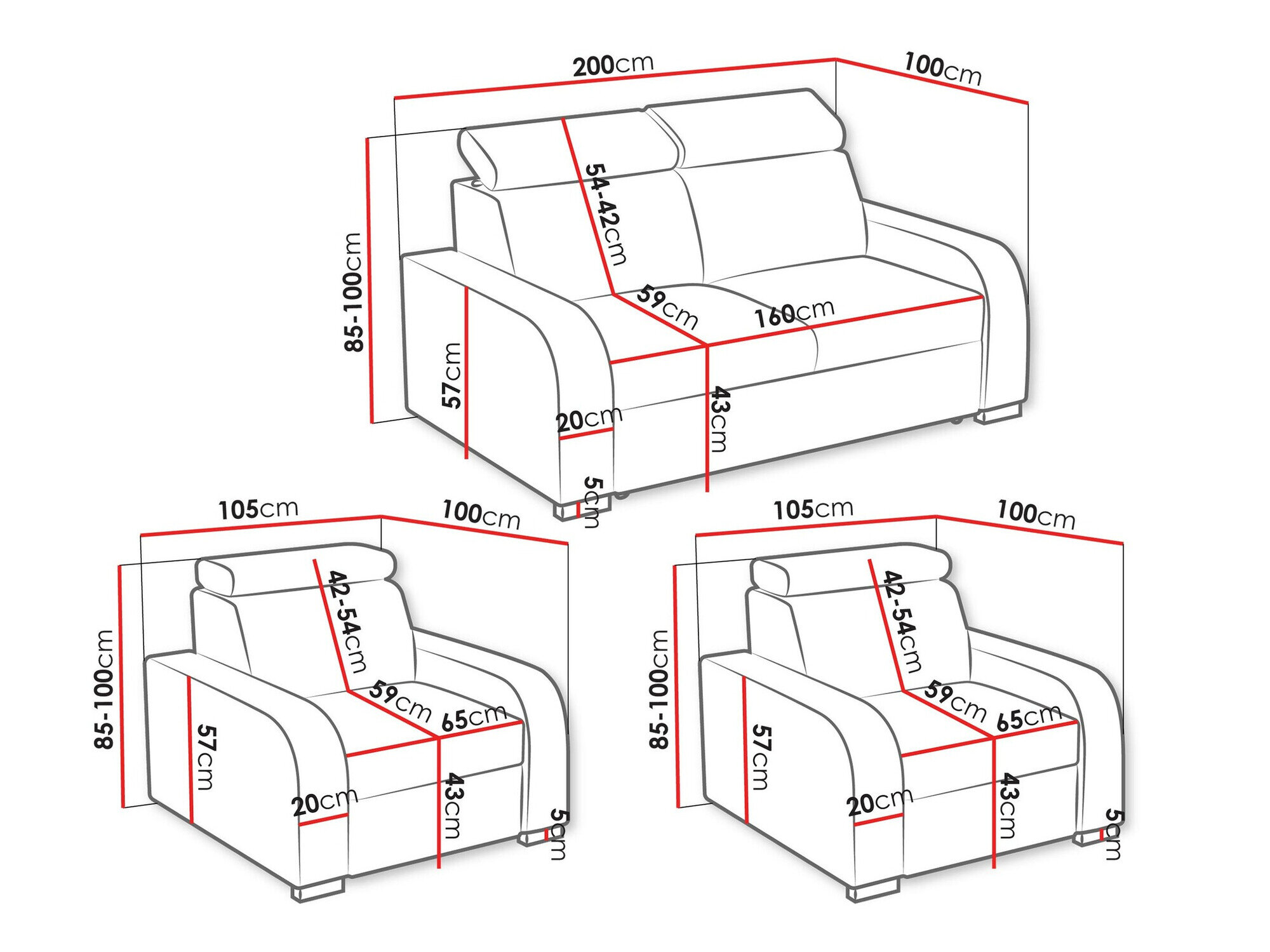 85 x 200 x 100 cm