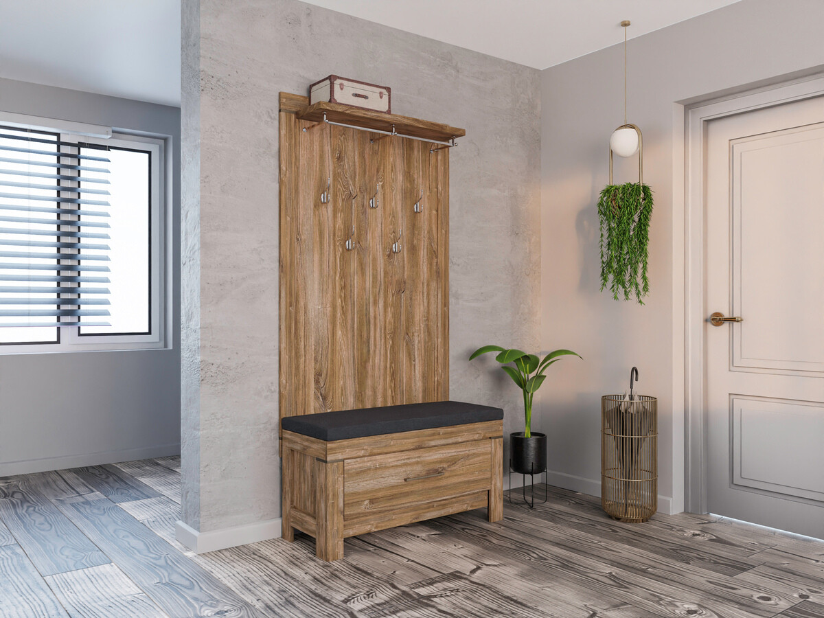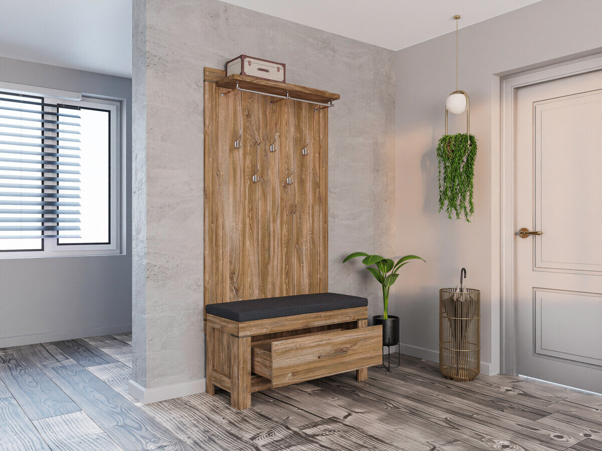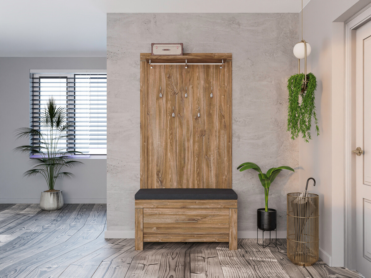 Die Schlichtheit, die exklusiven Formen und die satten Farben der Fronten dieser Möbelkollektion fügen sich perfekt in eine Vielzahl von Innenräumen ein und sprechen sowohl Liebhaber des klassischen als auch des exklusiven Designs an. Die Möbelfronten zeigen ein deutlich sichtbares Holzdekor, das zusammen mit der Farbe der Eichenholzoptik „Stirling“ dem Haus Gemütlichkeit und Wärme verleiht, und das Ganze wird ästhetisch durch komfortable Metallgriffe ergänzt. Dank des breiten Sortiments können diese modularen Möbel in einer Vielzahl von Räumen im Haus erfolgreich eingesetzt und miteinander kombiniert werden, so dass Kombinationen entstehen, die den individuellen Bedürfnissen entsprechen. Die Innenräume der Schränke und Schubladen sind geräumig genug, um eine effiziente Aufbewahrung verschiedener Gegenstände zu gewährleisten, während die LED-Beleuchtung in den Vitrinen, Hängeregalen, TV-Tischen und Regalen einen Hauch von Romantik vermittelt. Die Vitrinen dieser Kollektion sind mit gehärtetem Glas ausgestattet, das eine viel höhere Festigkeit als gewöhnliches Glas aufweist. Die Möbelkollektion verfügt über einen geräuschlosen Schließmechanismus, der für mehr Komfort sorgt und es Ihnen ermöglicht, zusätzliche Geräusche bei der Verwendung von Schubladen oder Schränken zu vermeiden.
