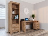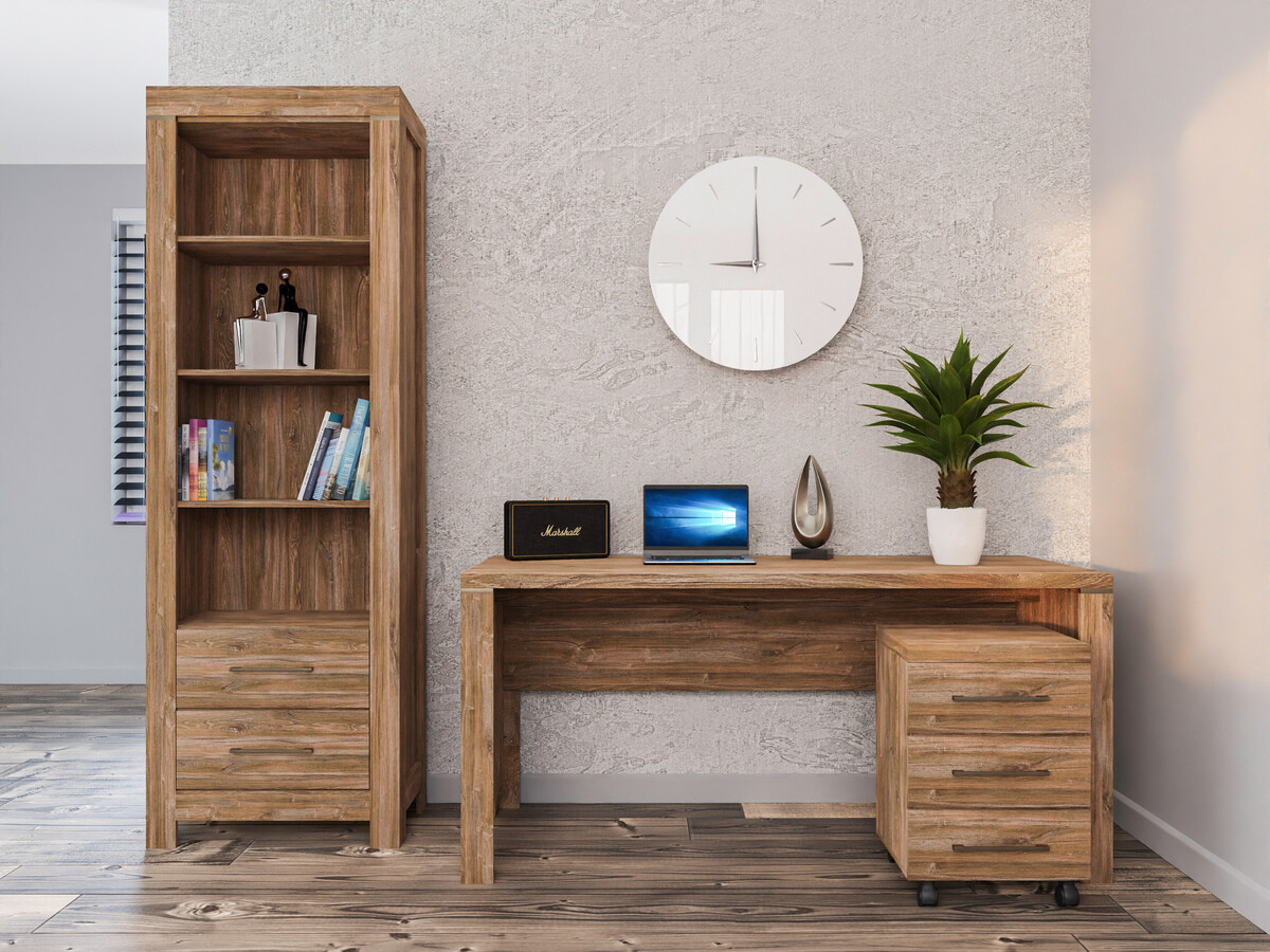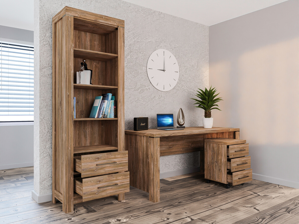 Die Schlichtheit, die exklusiven Formen und die satten Farben der Fronten dieser Möbelkollektion fügen sich perfekt in eine Vielzahl von Innenräumen ein und sprechen sowohl Liebhaber des klassischen als auch des exklusiven Designs an. Die Möbelfronten zeigen ein deutlich sichtbares Holzdekor, das zusammen mit der Farbe der Eichenholzoptik „Stirling“ dem Haus Gemütlichkeit und Wärme verleiht, und das Ganze wird ästhetisch durch komfortable Metallgriffe ergänzt. Dank des breiten Sortiments können diese modularen Möbel in einer Vielzahl von Räumen im Haus erfolgreich eingesetzt und miteinander kombiniert werden, so dass Kombinationen entstehen, die den individuellen Bedürfnissen entsprechen. Die Innenräume der Schränke und Schubladen sind geräumig genug, um eine effiziente Aufbewahrung verschiedener Gegenstände zu gewährleisten, während die LED-Beleuchtung in den Vitrinen, Hängeregalen, TV-Tischen und Regalen einen Hauch von Romantik vermittelt. Die Vitrinen dieser Kollektion sind mit gehärtetem Glas ausgestattet, das eine viel höhere Festigkeit als gewöhnliches Glas aufweist. Die Möbelkollektion verfügt über einen geräuschlosen Schließmechanismus, der für mehr Komfort sorgt und es Ihnen ermöglicht, zusätzliche Geräusche bei der Verwendung von Schubladen oder Schränken zu vermeiden.