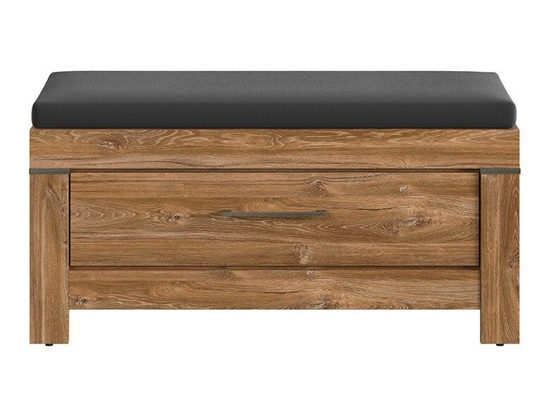 Die Möbelfronten zeigen ein deutlich sichtbares Holzdekor, das zusammen mit der Farbe der Eichenholzoptik „Stirling“ dem Haus Gemütlichkeit und Wärme verleiht, und das Ganze wird ästhetisch durch komfortable Metallgriffe ergänzt. Dank des breiten Sortiments können diese modularen Möbel in einer Vielzahl von Räumen im Haus erfolgreich eingesetzt und miteinander kombiniert werden, so dass Kombinationen entstehen, die den individuellen Bedürfnissen entsprechen. Die Innenräume der Schränke und Schubladen sind geräumig genug, um eine effiziente Aufbewahrung verschiedener Gegenstände zu gewährleisten, während die LED-Beleuchtung in den Vitrinen, Hängeregalen, TV-Tischen und Regalen einen Hauch von Romantik vermittelt. Die Vitrinen dieser Kollektion sind mit gehärtetem Glas ausgestattet, das eine viel höhere Festigkeit als gewöhnliches Glas aufweist. Die Möbelkollektion verfügt über einen geräuschlosen Schließmechanismus, der für mehr Komfort sorgt und es Ihnen ermöglicht, zusätzliche Geräusche bei der Verwendung von Schubladen oder Schränken zu vermeiden.