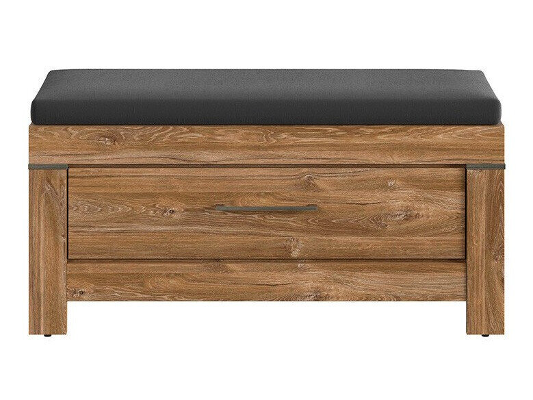 Die Schlichtheit, die exklusiven Formen und die satten Farben der Fronten dieser Möbelkollektion fügen sich perfekt in eine Vielzahl von Innenräumen ein und sprechen sowohl Liebhaber des klassischen als auch des exklusiven Designs an. Die Möbelfronten zeigen ein deutlich sichtbares Holzdekor, das zusammen mit der Farbe der Eichenholzoptik „Stirling“ dem Haus Gemütlichkeit und Wärme verleiht, und das Ganze wird ästhetisch durch komfortable Metallgriffe ergänzt. Dank des breiten Sortiments können diese modularen Möbel in einer Vielzahl von Räumen im Haus erfolgreich eingesetzt und miteinander kombiniert werden, so dass Kombinationen entstehen, die den individuellen Bedürfnissen entsprechen. Die Innenräume der Schränke und Schubladen sind geräumig genug, um eine effiziente Aufbewahrung verschiedener Gegenstände zu gewährleisten, während die LED-Beleuchtung in den Vitrinen, Hängeregalen, TV-Tischen und Regalen einen Hauch von Romantik vermittelt. Die Vitrinen dieser Kollektion sind mit gehärtetem Glas ausgestattet, das eine viel höhere Festigkeit als gewöhnliches Glas aufweist. Die Möbelkollektion verfügt über einen geräuschlosen Schließmechanismus, der für mehr Komfort sorgt und es Ihnen ermöglicht, zusätzliche Geräusche bei der Verwendung von Schubladen oder Schränken zu vermeiden.