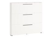 Die Kollektion moderner Flurmöbel wird jeden Liebhaber der Moderne begeistern. Ergänzt wird diese Kollektion durch lange schwarze Metallgriffe, die sich perfekt in das Design der Möbel einfügen. Die Möbel sind pflegeleicht, da sie mit einem farblosen Material überzogen werden, das sie vor kleinen Kratzern schützt und es ermöglicht, angesammelten Schmutz leicht zu entfernen. Die Kanten der Möbelkollektion sind mit einem Abschlussband aus starkem Kunststoff versehen, das die Möbel vor kleinen Beschädigungen schützt. Die Schubladen und Türen haben einen geräuschlosen Schließmechanismus, der sie vor schnellem Schließen schützt. Die schmalen Schränke fügen sich perfekt in das Design Ihrer Wohnung ein, und die Schuhhalter aus Metall sorgen für eine bequeme Schuhaufbewahrung. Funktionalität und Bequemlichkeit sind wesentliche Merkmale dieser in Deutschland hergestellten Kollektion. Schaffen Sie mit dieser Möbelkollektion ein modernes Zuhause.