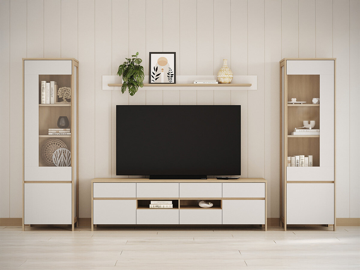 Wohnzimmer-Sets Fermaru 111 (Weiß + Eichenholzoptik)
