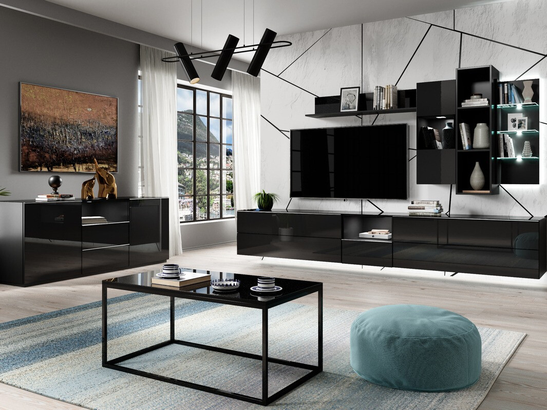 Die Möbelkollektion wird selbst die wählerischsten Liebhaber des Minimalismus überraschen. Alle Möbel der Kollektion verfügen über klare Linien und ein minimalistisches Design. Diese Möbelkollektion bietet sehr schlichte Silhouetten und Formen. Die glänzenden Oberflächen der Möbel verleihen dem Innenraum Vitalität und Luxus. Sie können die Möbel aus dieser Kollektion in 3 Farben wählen: Weiß, Schwarz und Schwarz kombiniert mit Grau. Trendiges Weiß bringt immer Harmonie in Ihre Wohnräume, während elegantes Schwarz und Grau der Inneneinrichtung Ihres Hauses subtilen Luxus verleihen. Eine Kombination aus diesen Farben und den schlichten Linien ist ein wesentliches Merkmal dieser Kollektion, die mit den heutigen Trends Schritt hält. Das moderne Möbeldesign wird durch verchromte Griffe akzentuiert, die perfekt mit den Möbellinien verschmelzen. Die vorherrschenden Farben und die glänzenden Oberflächen bereichern das Innere Ihres Hauses. Diese Möbelkollektion ist der Beweis dafür, dass Minimalismus und Eleganz mit einer Qualität vereinbar sind, die Ihre Erwartungen erfüllen wird.