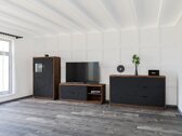 Bei der Auswahl von Möbeln für Ihr Zuhause ist es wichtig, sich vorzustellen, wie die Möbel insgesamt aussehen werden. Die Möbelkollektionen geben einen guten Überblick über die Eigenschaften und die Kompatibilität der Möbel. Die richtige Farbe und Form ist sowohl für kleine als auch für große Räume geeignet. Mehr Gemütlichkeit, die an Natürlichkeit und Natur erinnert, sorgt für mehr Behaglichkeit. Die Kollektion besticht durch ihr modernes Design, das durch minimalistisch inspirierte Formen ergänzt wird. Dies ist ein Beispiel für einen modernen Einrichtungsstil. Dekorative Motive auf den Fronten verleihen den Möbeln zusätzlichen Charme. Die Möbelkollektion fügt sich perfekt in den Wohnbereich ein. Es wird auf jeden Fall genug Platz für Dinge geben, denn an Regalen und geräumigen Schubladen mangelt es den Möbeln nicht. Bei der Gestaltung des Designs wurde auch an die Funktionalität gedacht. Die Schubladen und Türen verfügen über einen geräuschlosen Schließmechanismus, der die Türen und Schubladen vor schnellem Schließen schützt, ohne zusätzlichen Lärm zu verursachen. Für die Vitrinen wird gehärtetes Glas verwendet, das sich durch Robustheit und Langlebigkeit auszeichnet. Zusätzlich können Sie eine LED-Beleuchtung in die Vitrinen integrieren, die die Details der Gegenstände in den Vitrinen hervorhebt. Wählen Sie Ihre Lieblingsfarbe und beginnen Sie mit der Umgestaltung Ihres Zuhauses.
