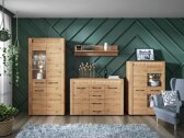 Mehr und mehr schätzen wir die gemütlichen Momente zu Hause. Unser Heim wird zu einem Ort der Ruhe, der Arbeit und der Freizeit. Die von der Natur inspirierte Kollektion zieht mit ihren natürlichen Farben und Details Blicke an. Diese Kollektion ist perfekt für alle, die mehr Gemütlichkeit in ihr Zuhause bringen wollen. Einfache Linien und Eichenholzoptik bilden ein exklusives Duo. Vielleicht ist diese Kollektion genau das, wonach Sie suchen? Die Möbelfronten sind mit einem Holzdekor bedruckt, was der Kollektion Einzigartigkeit verleiht. Metallgriffe unterstreichen das exklusive Design der Möbel zusätzlich. Zusätzlichen Charakter verleihen dekorative Ornamente, die durch die in die Fronten der Möbel eingebaute LED-Beleuchtung akzentuiert werden. Sie können auch eine LED-Beleuchtung für die Vitrinen bestellen, die die Details der Inneneinrichtung hervorhebt. Die Fronten in Eichenholzoptik „Artisan“, gehärtetes Glas, LED-Beleuchtung und Metallgriffe machen die Kollektion einzigartig. Alles wird durch den perfekt genutzten Stauraum des Mobiliars geprägt. So können Sie all Ihre wichtigsten Gegenstände unterbringen.